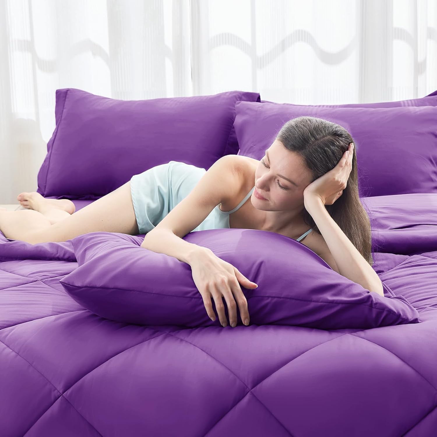 HEVUMYI Purple Cali-King Comforter Set - 7-Piece All Season Bed in a Bag Cali-King, Ultra Soft Bedding Set with Comforter, Flat Sheet, Fitted Sheet, Pillowcases, Pillow Shams