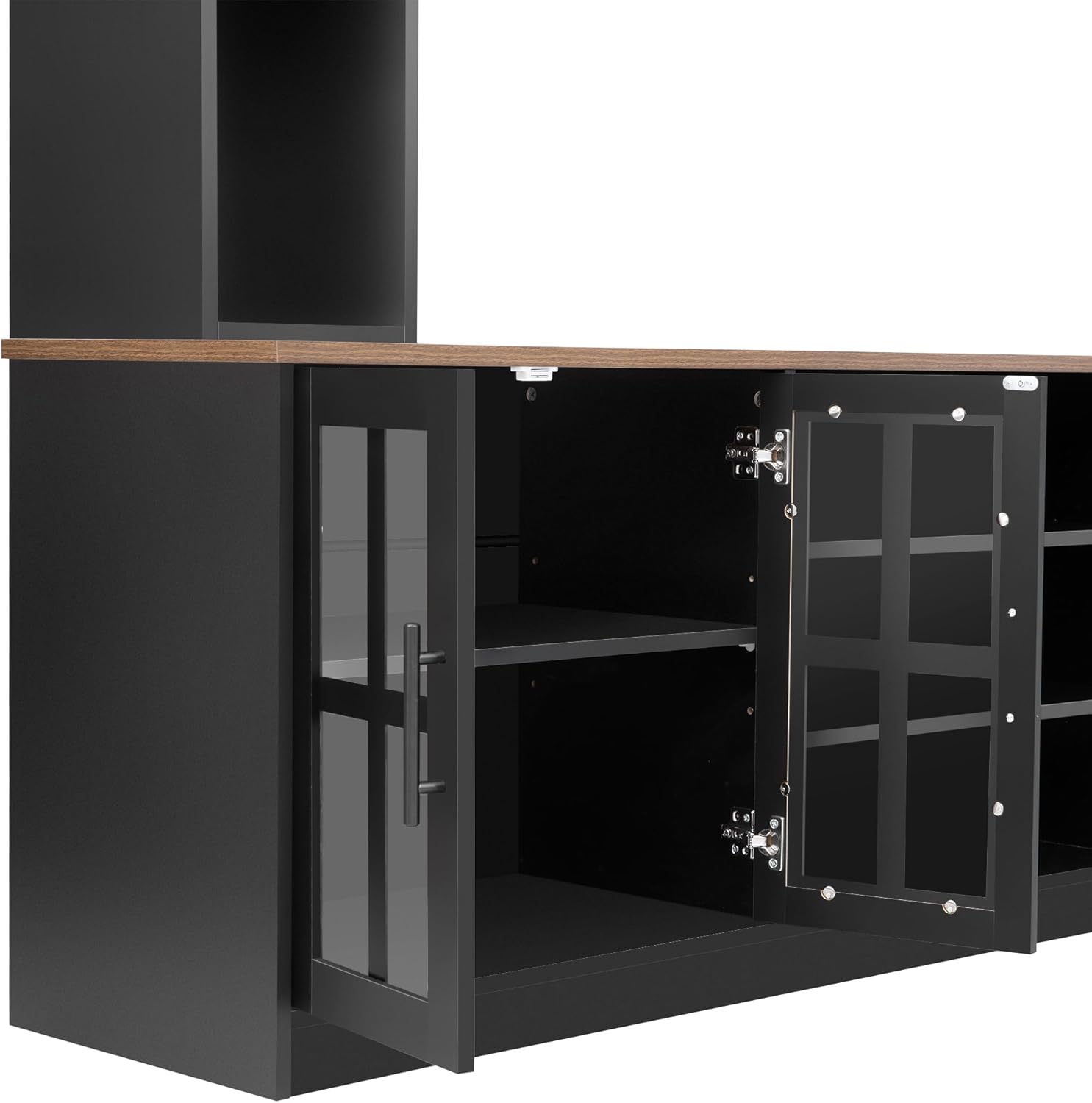 95.5" Wall Unit TV Stand Set with Bookshelves, Entertainment Center for Televisions Up to 80", Large Media Console with Cabinets and Tempered Glass Doors for Living Room