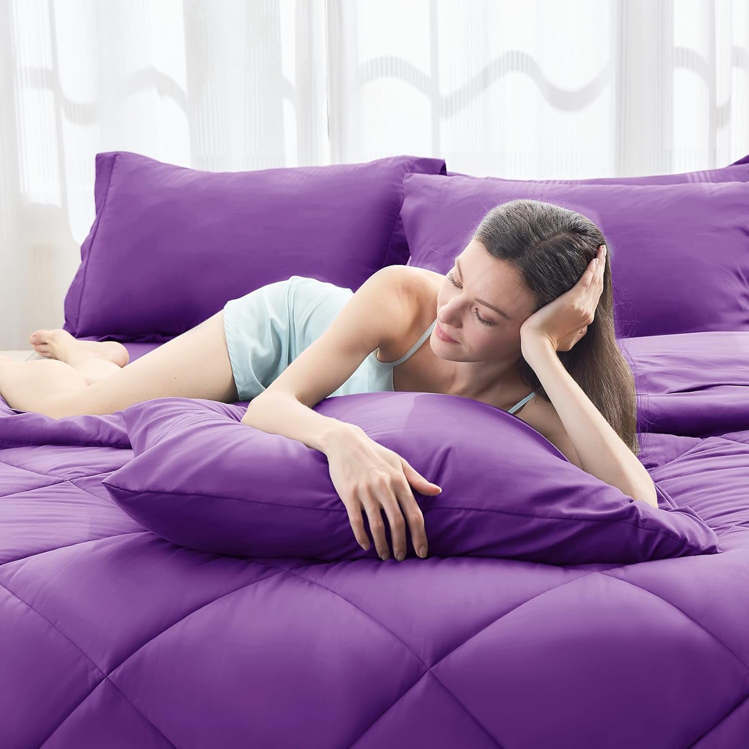 HEVUMYI Purple Twin-XL Comforter Set - 5-Piece All Season Bed in a Bag Twin-XL, Ultra Soft Bedding Set with Comforter, Flat Sheet, Fitted Sheet, Pillowcases, Pillow Shams
