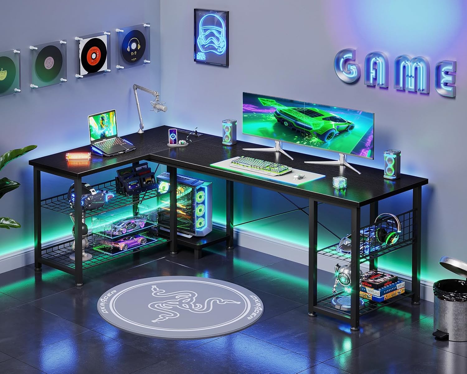 - ăAmple Storage SpaceăCasaottima L-shaped desk provides 4-tier open metal grid shelves and 1 CPU stand. Store frequently used items and decor on the open shelves.Store frequently used items and decorations. It not only makes the items easy to access but also keeps the desktop tidy.