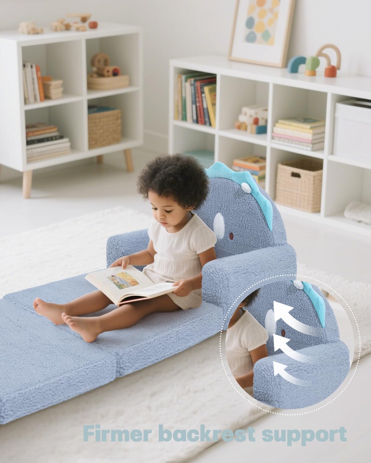 - 2-IN-1 FOLDABLE DESIGN: Functions as both a toddler chair and a fold-out lounger; the convertible structure saves space and offers a dedicated spot for reading, watching cartoons, or short naps during the day