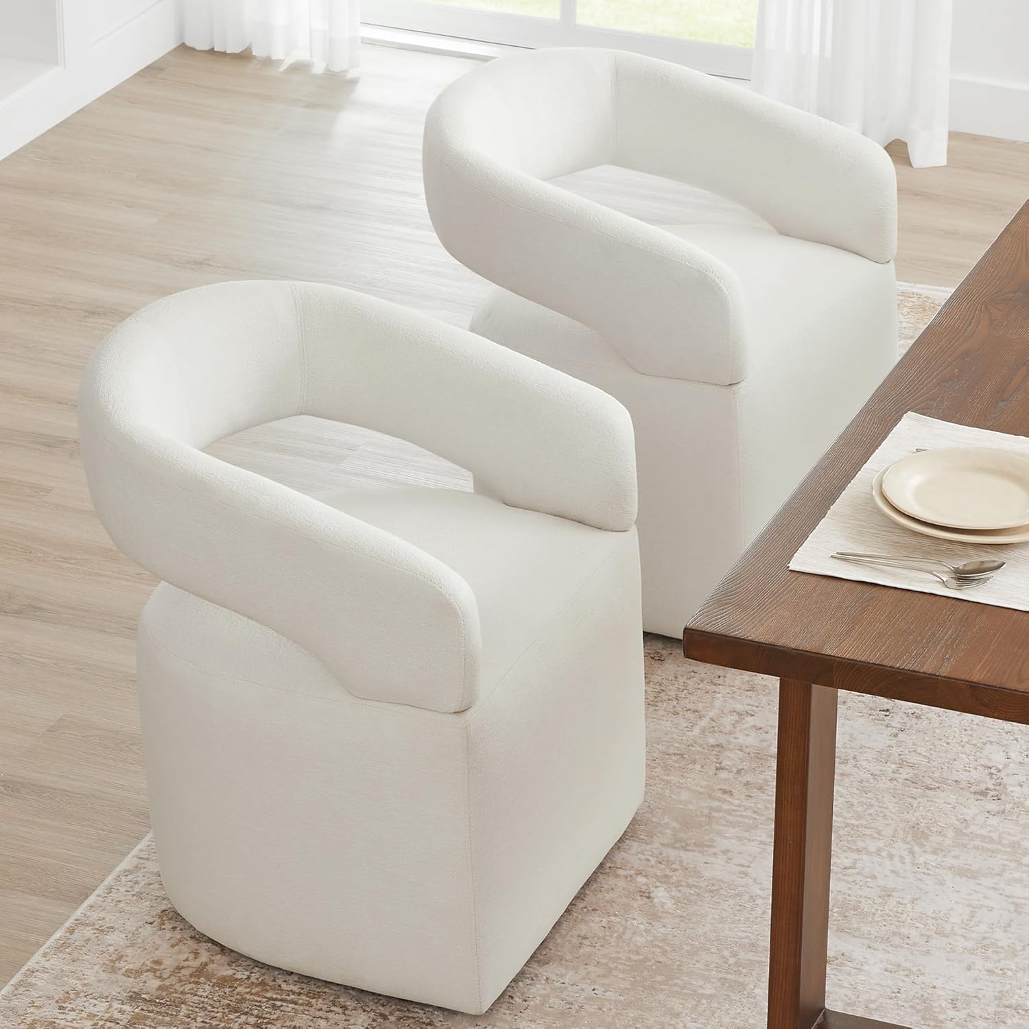 - 【VERSATILE ANYWHERE CHAIR】Our dining armchair with hidden casters is more than just a typical dining chair. With its versatile design, it can effortlessly transform into a vanity chair, an office chair, or even provide extra seating wherever you need it. This multipurpose chair adapts to your changing needs, making it the perfect addition to any room in your home.