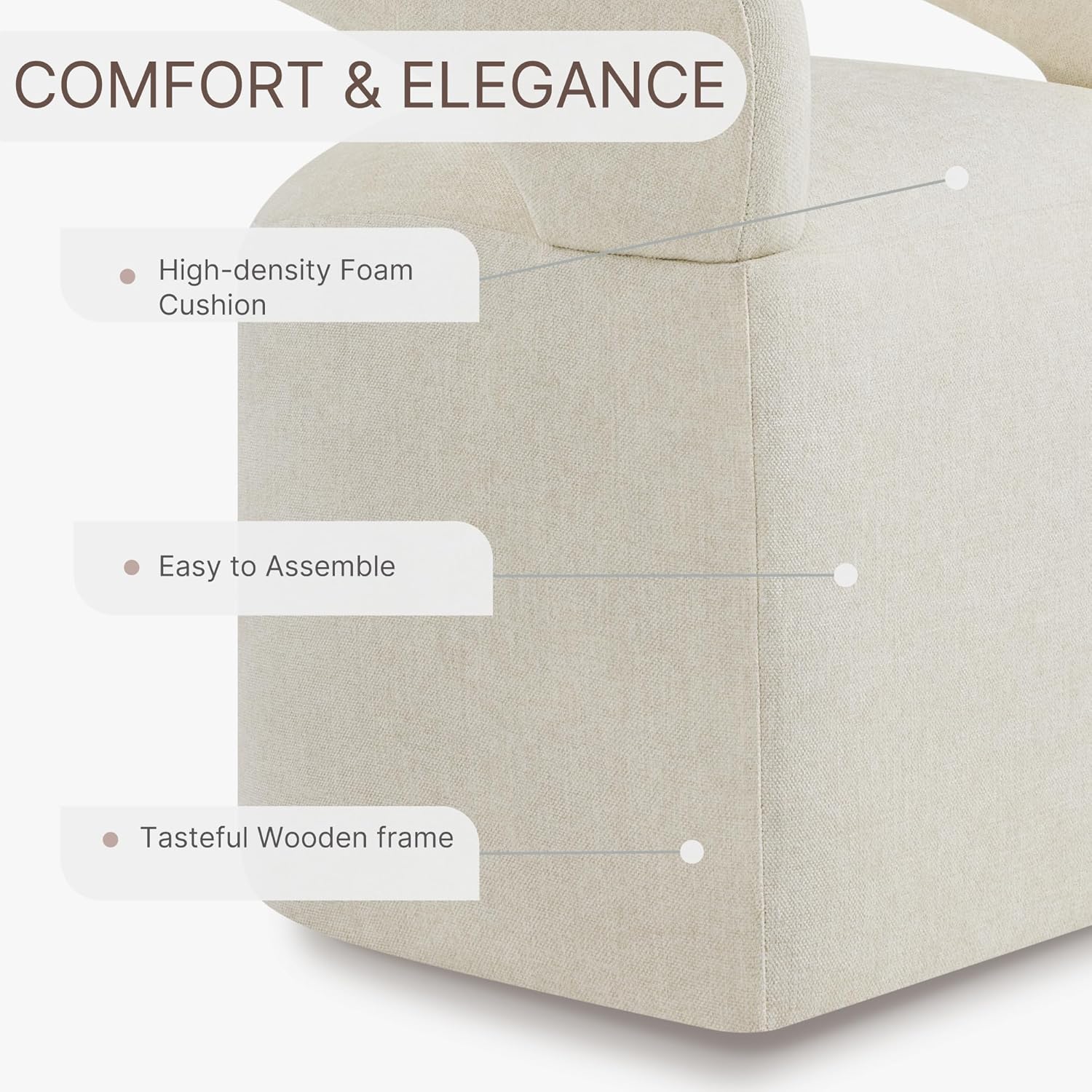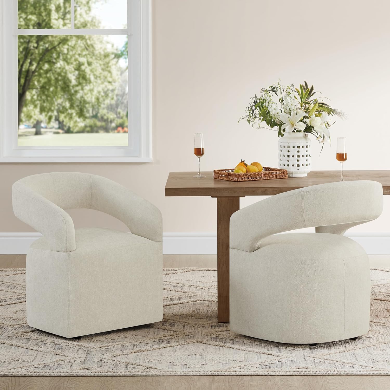 - 【VERSATILE ANYWHERE CHAIR】Our dining armchair with hidden casters is more than just a typical dining chair. With its versatile design, it can effortlessly transform into a vanity chair, an office chair, or even provide extra seating wherever you need it. This multipurpose chair adapts to your changing needs, making it the perfect addition to any room in your home.