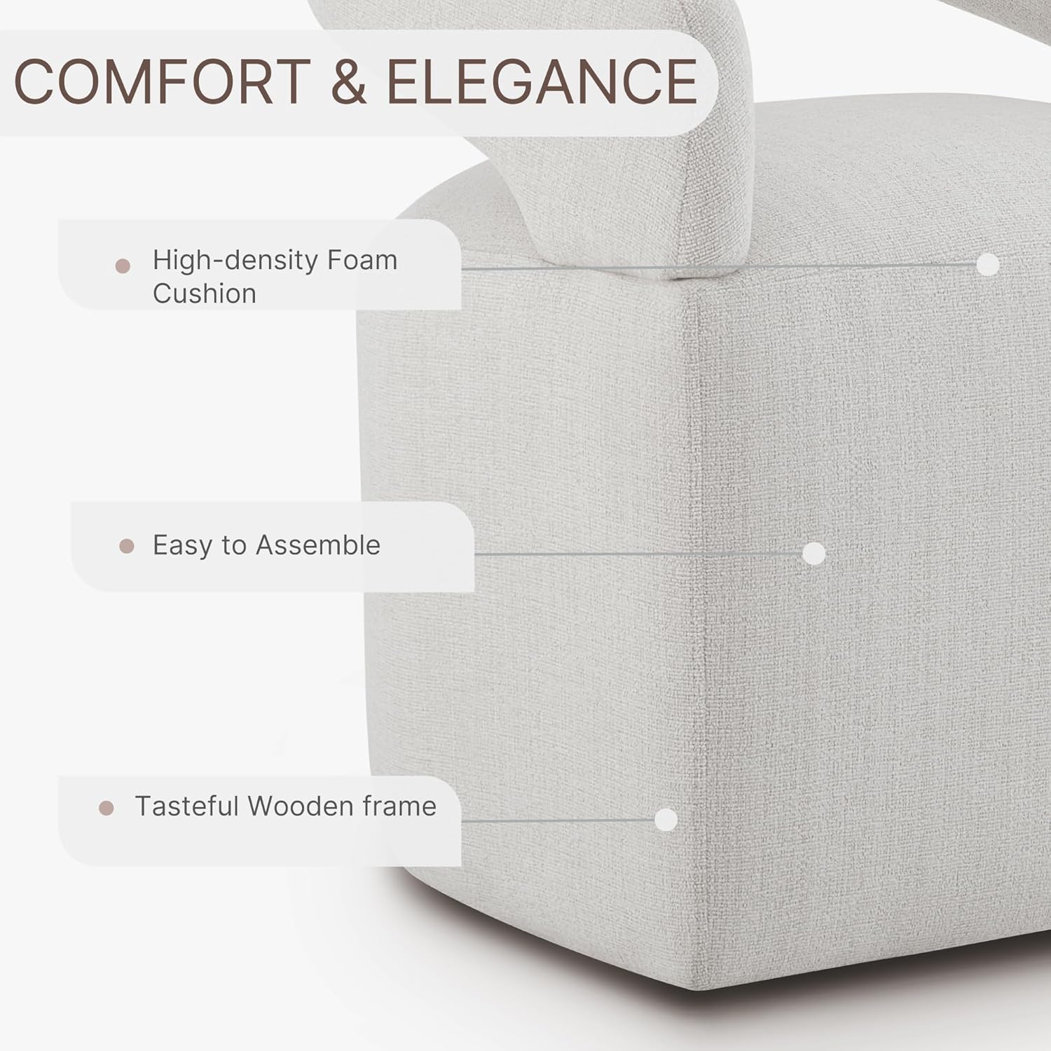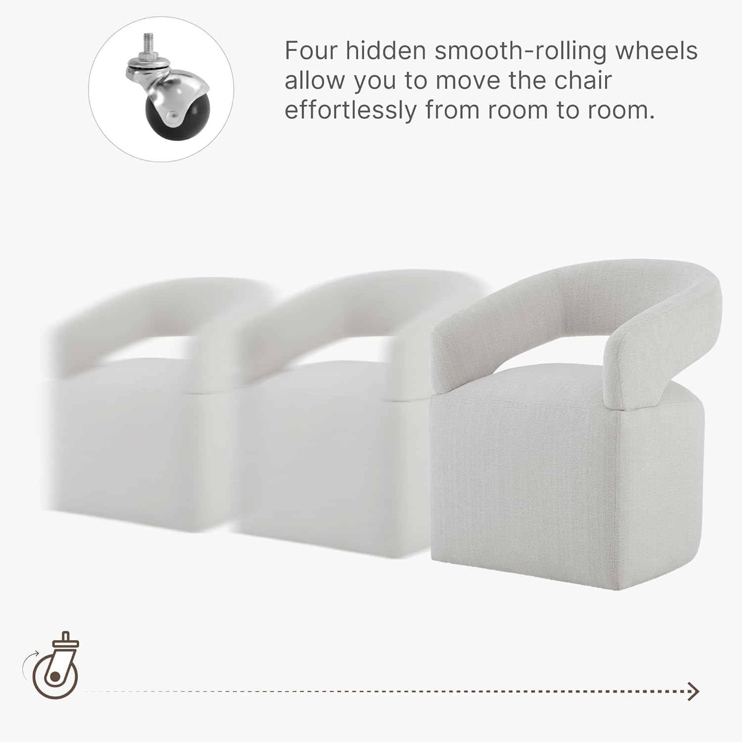 Upholstered Dining Chairs with Removable Casters Barrel Side Armchair with Rollers for Diningroom Bedroom Livingroom Reading Room, Linen, 1PCS