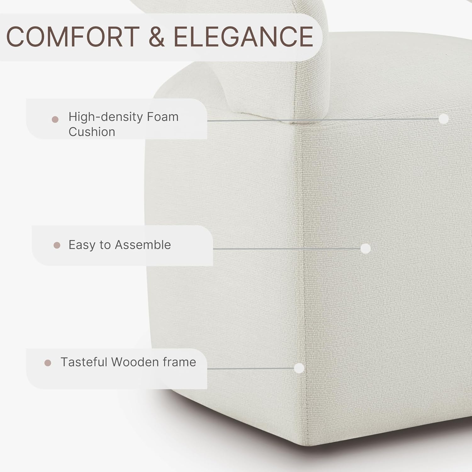 Upholstered Dining Chairs with Removable Casters Barrel Side Armchair with Rollers for Diningroom Bedroom Livingroom Reading Room, Ivory, 4PCS