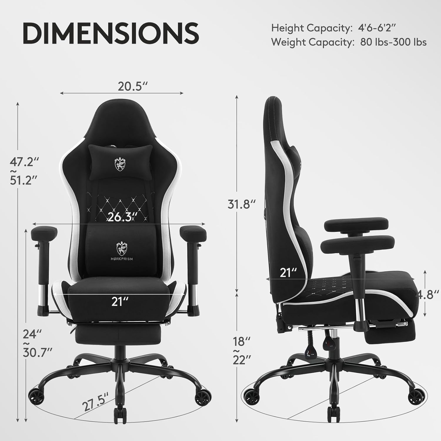 - High Quality Materials: Softer,more breathable,even more durable.The gaming chair uses unique embossed microfiber fabric accented with classic diamond quilting pattern.Stay cool and comfortable with the advanced fabric gaming chair.
