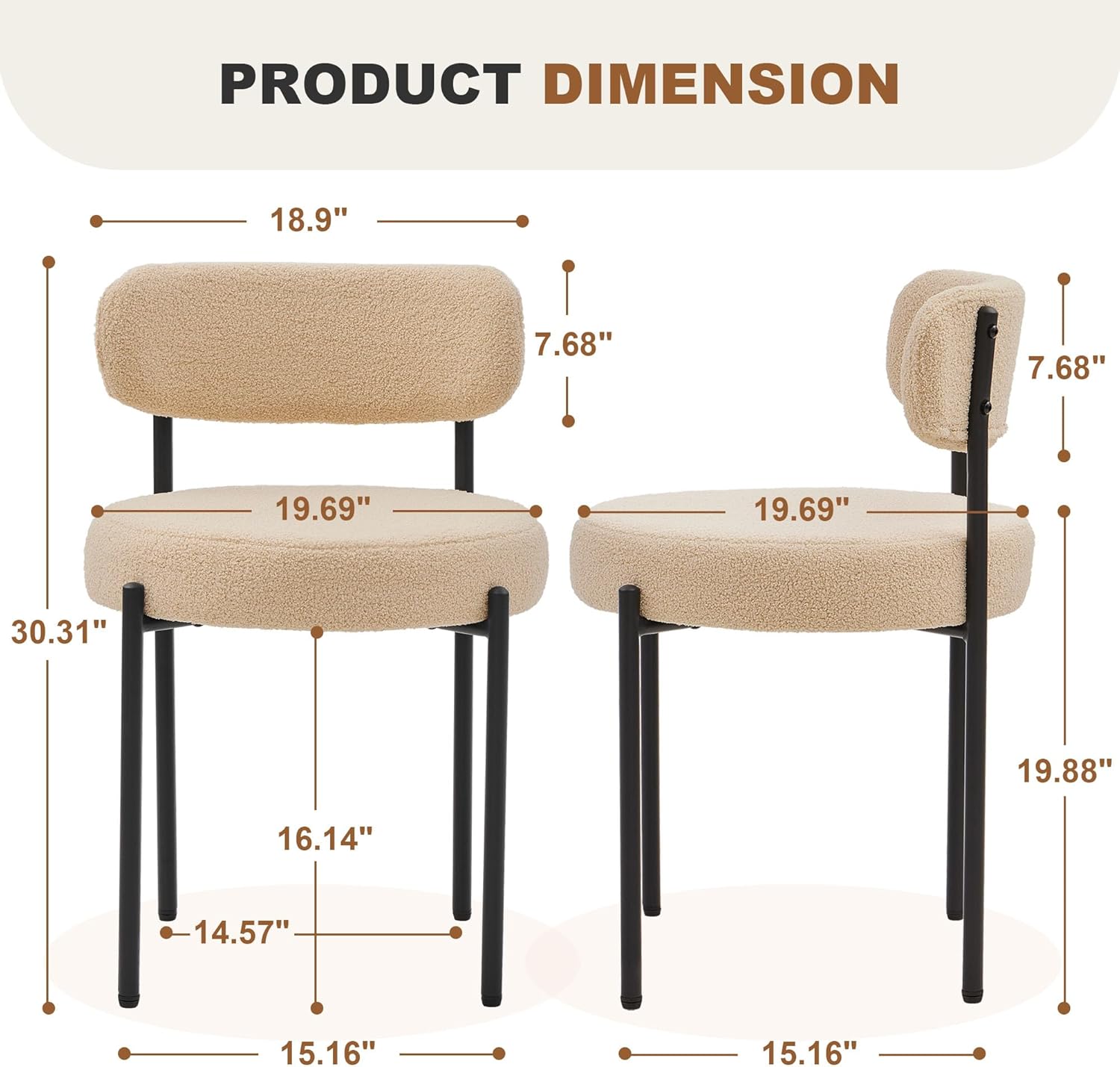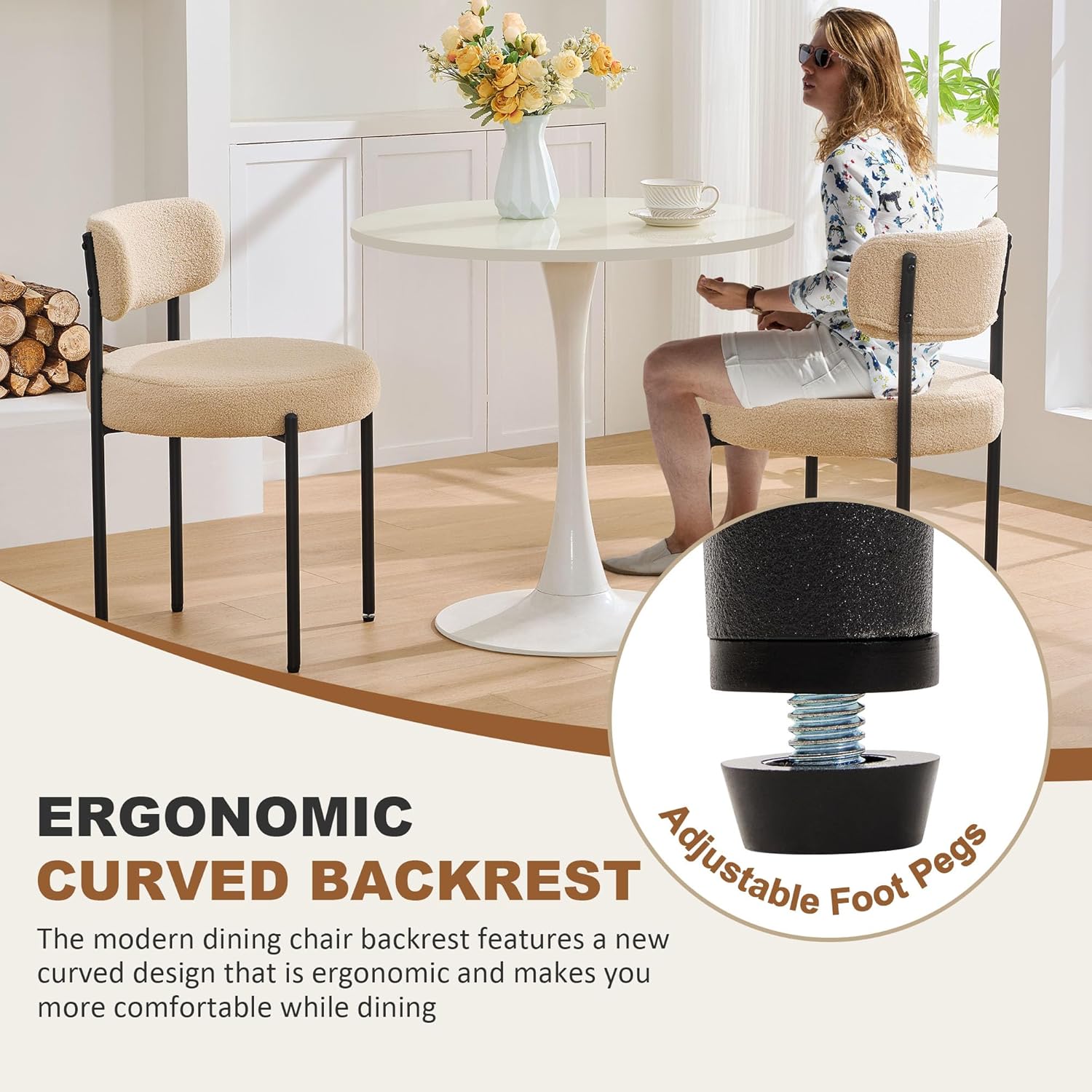 Boucle Dining Chairs, Kitchen Dining Room Chairs Curved Backrest Upholstered Mid Century Modern Dining Chairs (Beige, 2pcs)