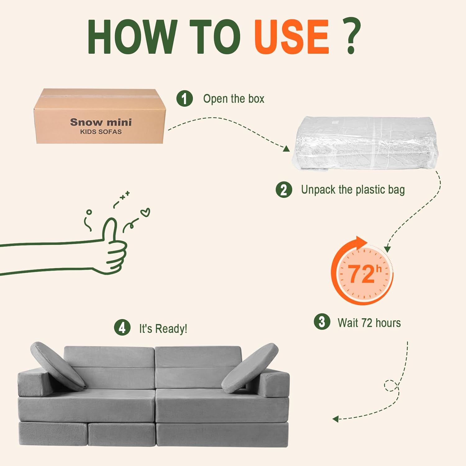 - Multifunctional Sofa: Perfect for playrooms, bedrooms and family spaces, this toddler sofa supports children to climb, read, relax and engage in creative play. The flexible design allows it to be flexibly adjusted as the child grows, and can be adapted to children of different ages