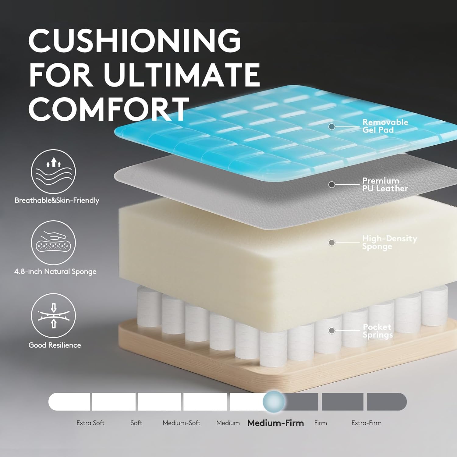 - Cooling Comfort Spring Cushion: The seat cushion of this chair is composed of ultra-thick high-density foam and pocket springs, providing sofa-like elasticity and comfort. The springs help distribute pressure evenly, allowing you to sit for long periods without fatigue. An additional detachable gel pad can be placed on the lumbar pillow or seat surface to improve breathability and reduce heat buildup.