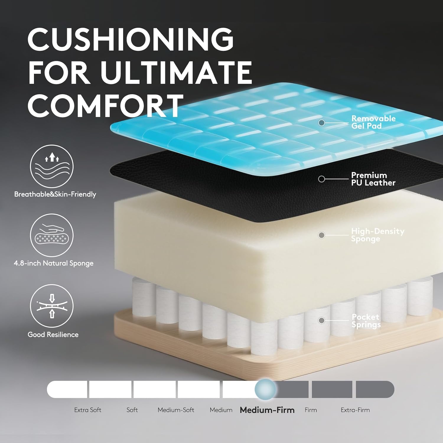 - Cooling Comfort Spring Cushion: The seat cushion of this chair is composed of ultra-thick high-density foam and pocket springs, providing sofa-like elasticity and comfort. The springs help distribute pressure evenly, allowing you to sit for long periods without fatigue. An additional detachable gel pad can be placed on the lumbar pillow or seat surface to improve breathability and reduce heat buildup.