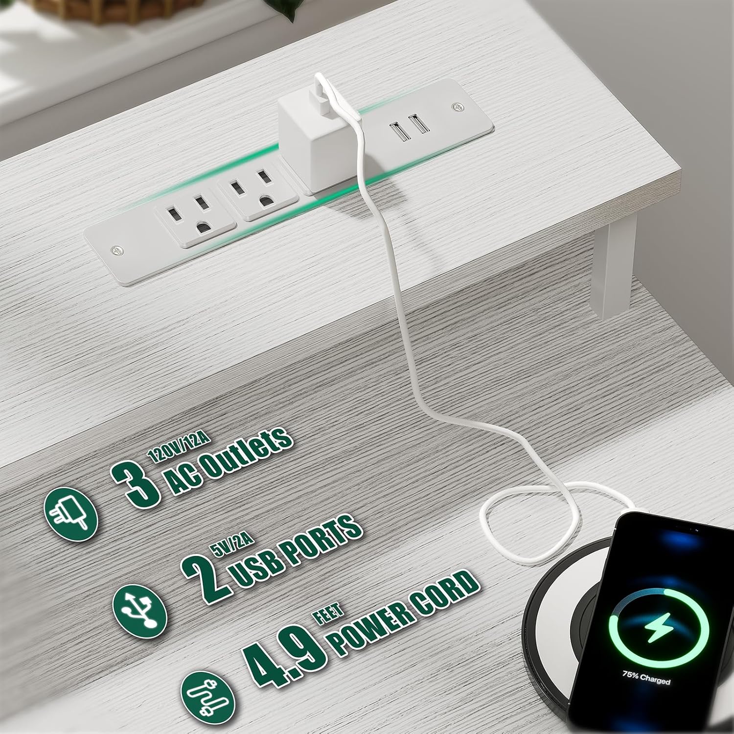 - Built-in Charging Station: 47 inch computer desk equipped with 3 power outlets and 2 USB charging ports for your electronic devices, the home office desk with charging station makes it easy and convenient to charge your laptop, smartphone, gaming device or bluetooth device