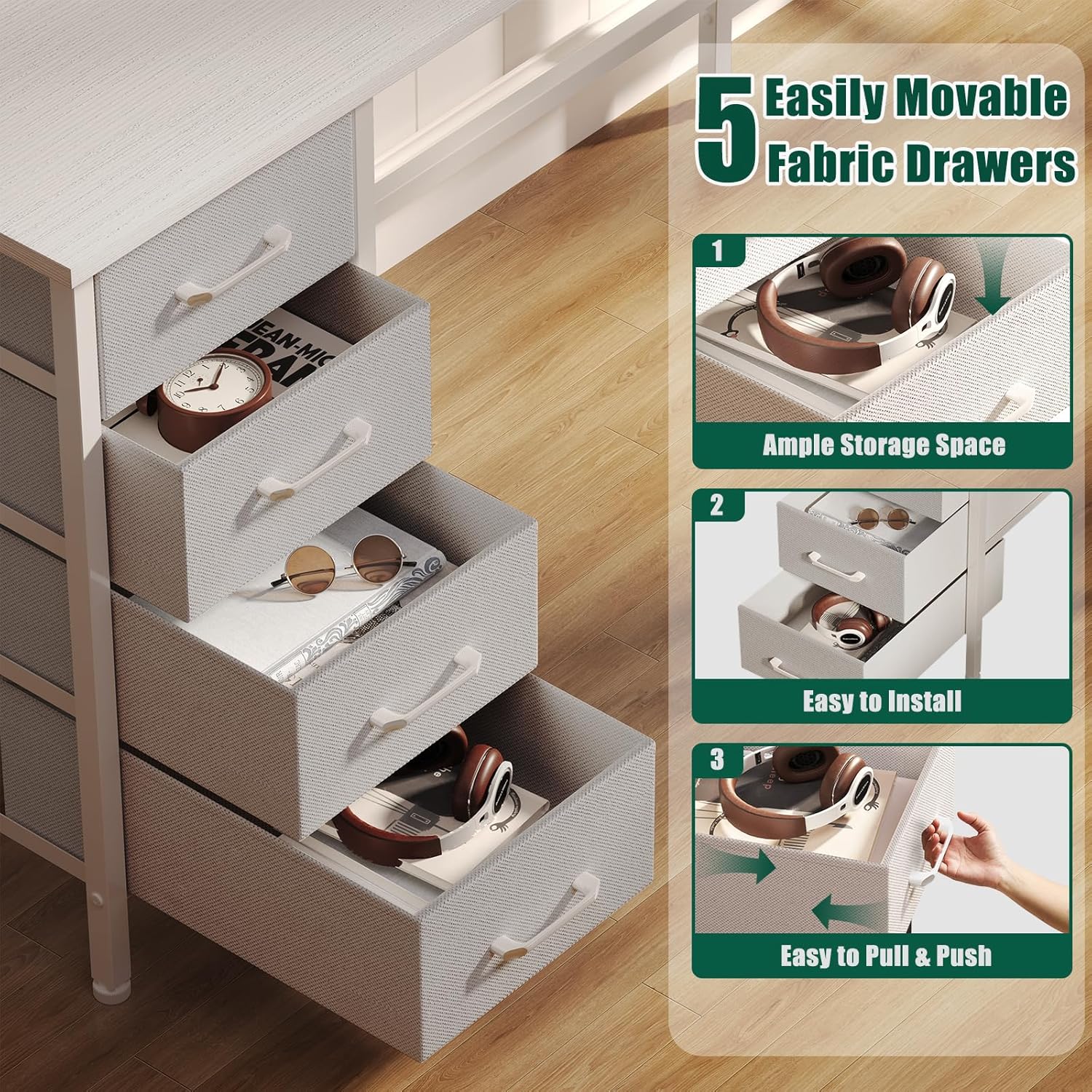 - Large Storage Space: Computer desk comes with 5 fabric drawers, the drawer size is 9.2''x18''x7.5'', which can be used to store headphones, files or other sundries to help you save desktop space, and the drawers can be reversible, you can try different drawer mounting directions (left or right, above or below) to customize the storage space