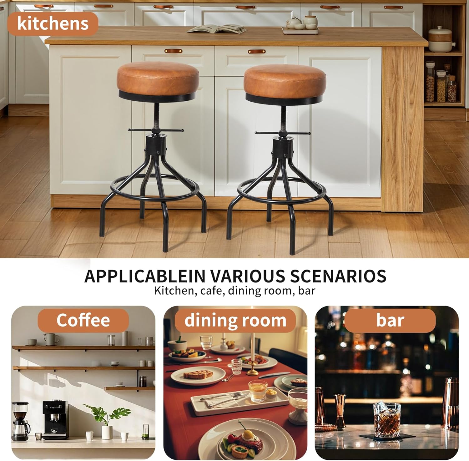 - Versatile Backless Bar Stools: Our modern adjustable swivel bar stools for kitchen counter match with different decoration style, suitable for kitchen island, dining room, living room, farmhouse, cafe, bistro, pubs and work well with any decor.
