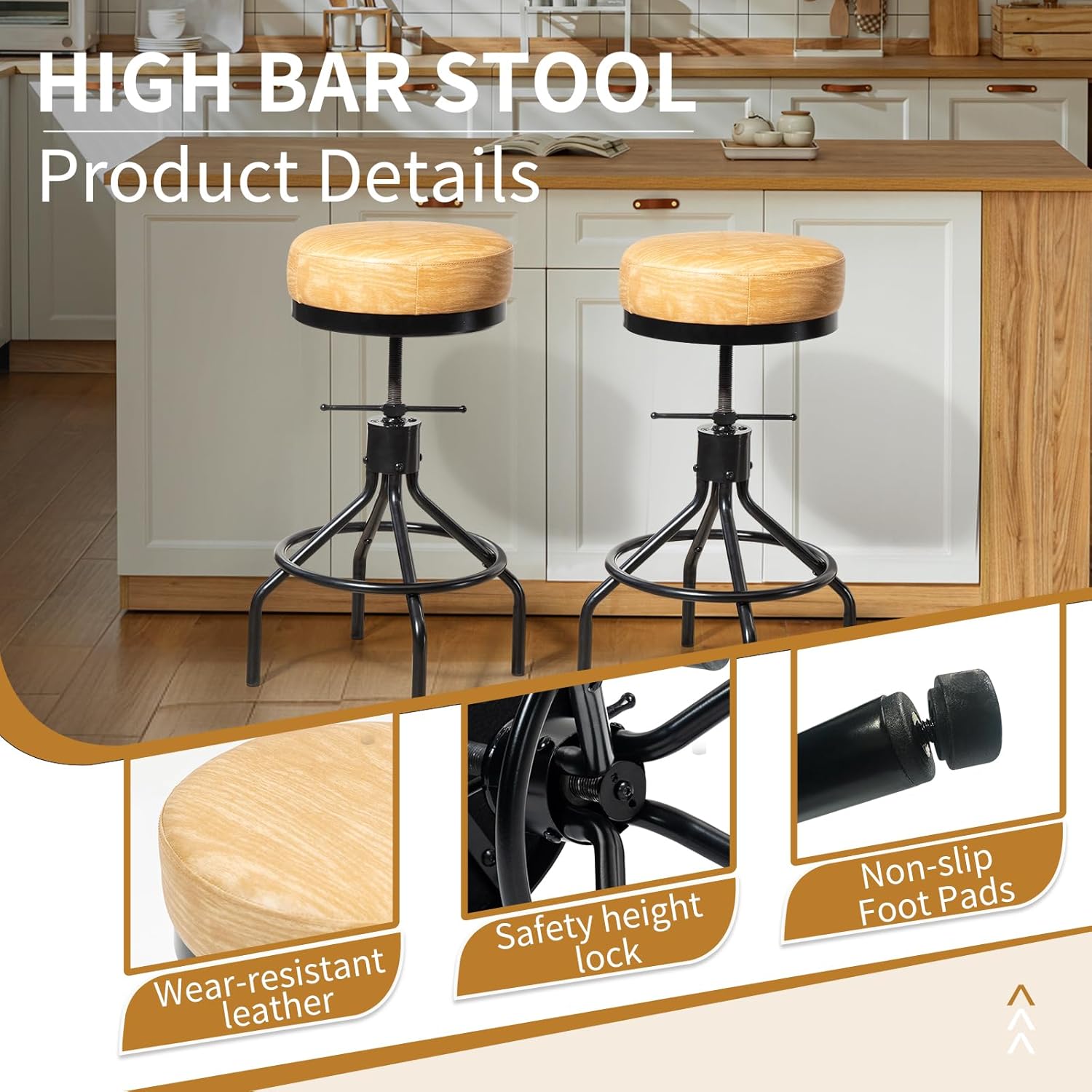 - Simple to Install Faux Leather Barstools: Designed in a simple but steady way, adjustable height bar stools for kitchen island are easy to install. Installation instruction is included in the package together with all parts and hardware. Our customer service is always available if you have any question during installing.