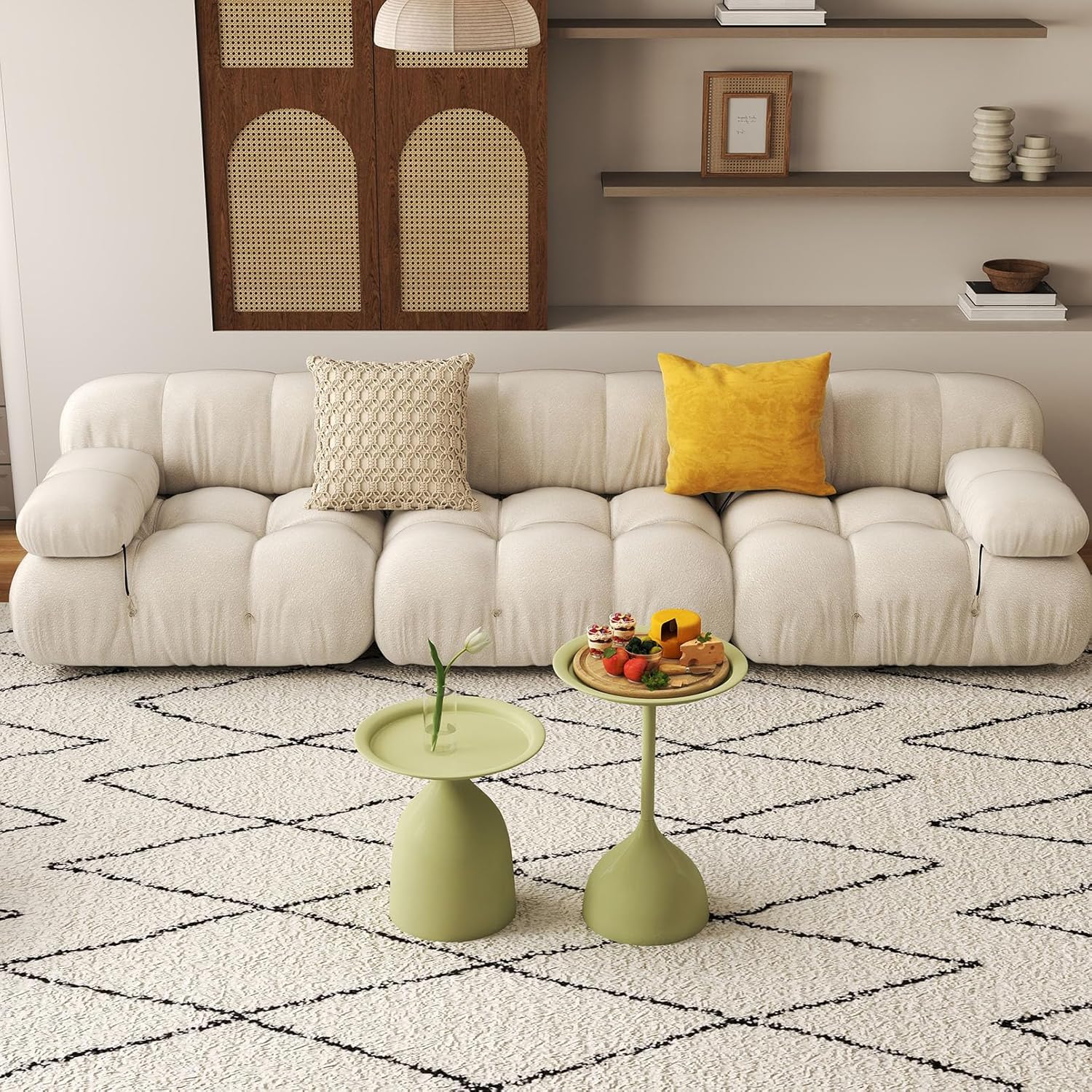 hitsuki Green Nesting Coffee Table Set of 2 Funky Colorful Round Metal End Side Tables for Living Room Sofa Retro Modern Pedestal nightstand Cute Matte Cream Green Side Table