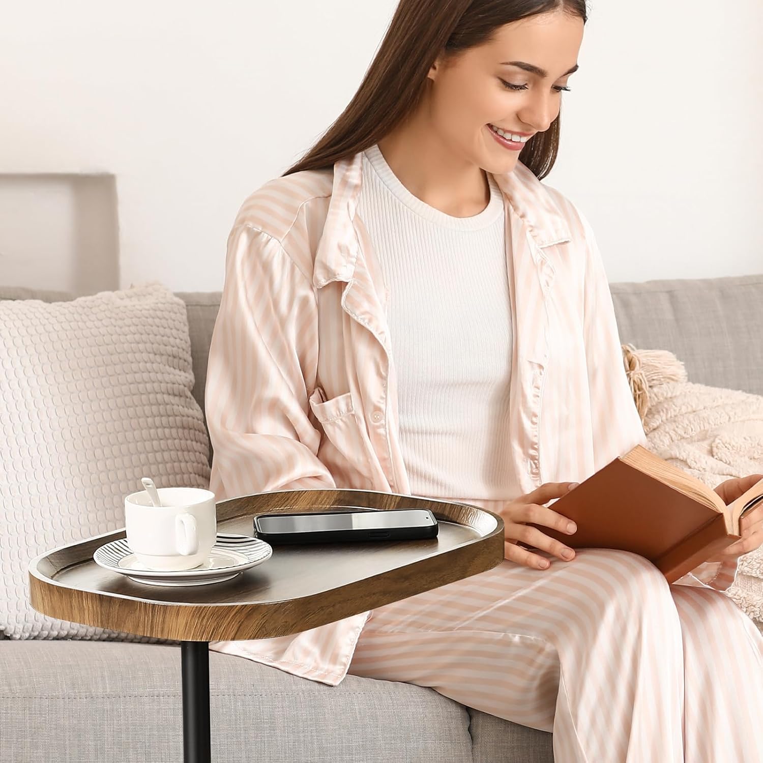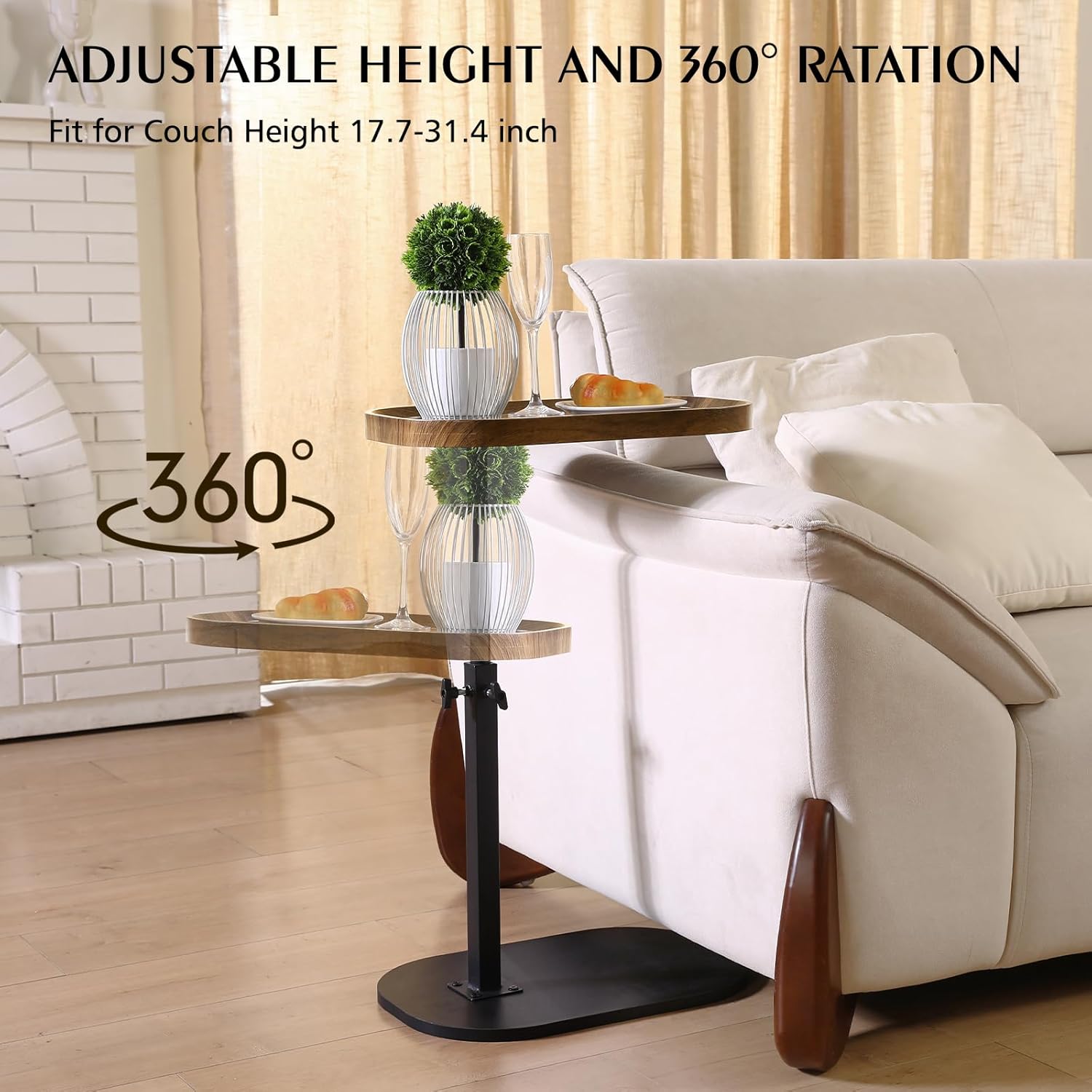- 【Adjustable Height and 360 Degree Rotation】 -Small c shape end table features height adjustment from 18 "to 31". At the same time, the desktop has a 360° rotation function. You can use it from multiple angles and heights to do whatever you want.C-shaped side table is equipped with wheels and can be easily slide under the sofa or bed.If you're looking for space-saving furniture for a small room, this compact couch tray is perfect for you.