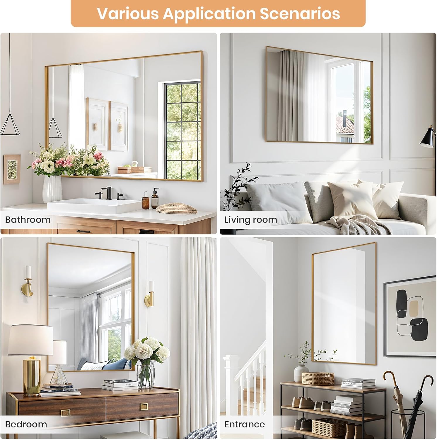 - 【Easy to Install】Equipped with mounting strips and expansion screws. It can be hung vertically or horizontally to fit any space, including bathroom, vanity, bedroom, living room, entryway, fireplace, etc