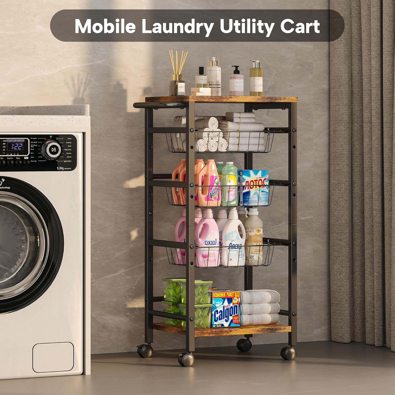 - 【Easy to Move】With a metal handle and 360°rotating wheels, you can easily move this mobile kitchen cart to any place you want. Use the brakes on the wheels to keep the rolling utility cart on wheels in place