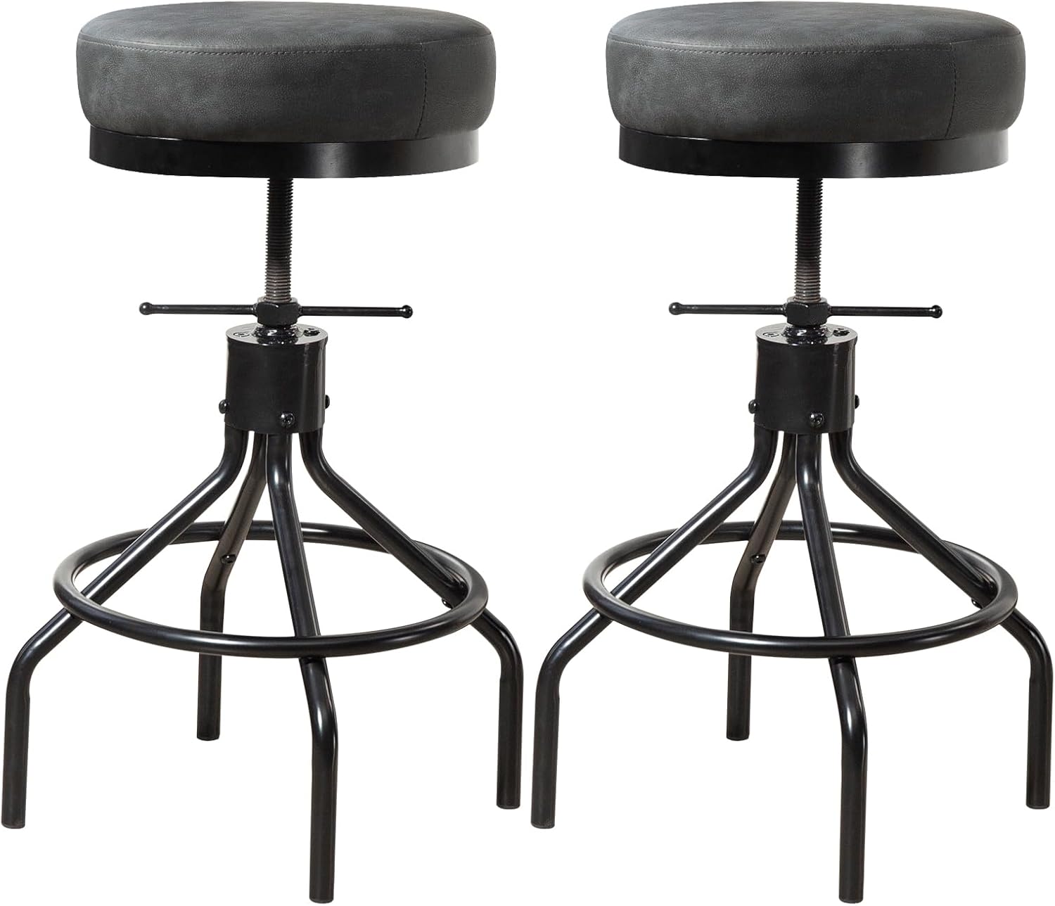 - Swivel Faux Leather Bar Chairs: The metal bar stool height can be adjusted from 22'' to 28'', specially reinforced safety mechanism keep the grey bar chair stable from shaking. 360° rotated seat ensures your comfort when fetching things.