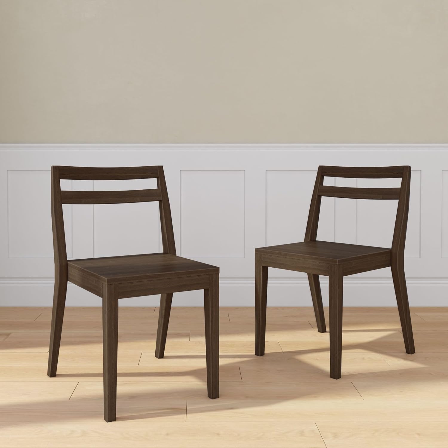 - Timeless & Versatile Look: Solid wood chair’s simple design, featuring two horizontal slats and a choice of neutral finishes, blends effortlessly with any décor.