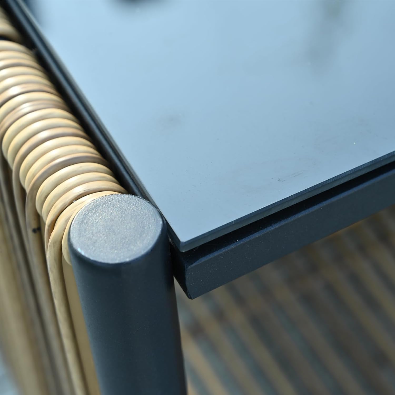 - [FUNCTIONAL COFFEE TABLE WITH STORAGE] YOPTO Outdoor Wicker 2 Seater Sofa Set includes a sleek rectangular coffee table with a 5mm black tempered glass top, making it easy to clean and maintain. A bottom storage shelf beneath the glass adds extra space for books, snacks, or décor, enhancing the convenience of this Loveseat Patio Conversation Set while keeping your outdoor space organized.