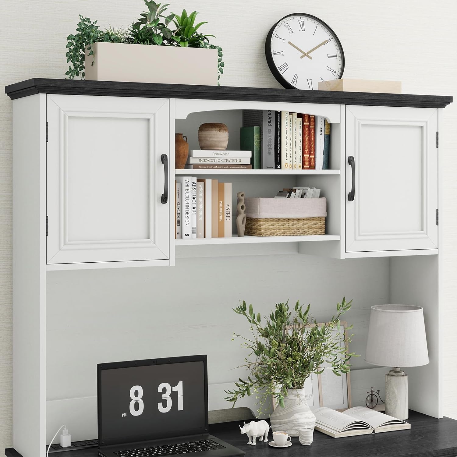 - 💻🏡【Rustic Farmhouse Desk】This sophisticated executive desk with a hutch elegantly merges rustic farmhouse aesthetics with contemporary styling, serving as the centerpiece of any modern home office. The design offers an expansive work surface paired with abundant organizational solutions, fostering both productivity and visual harmony in your workspace.