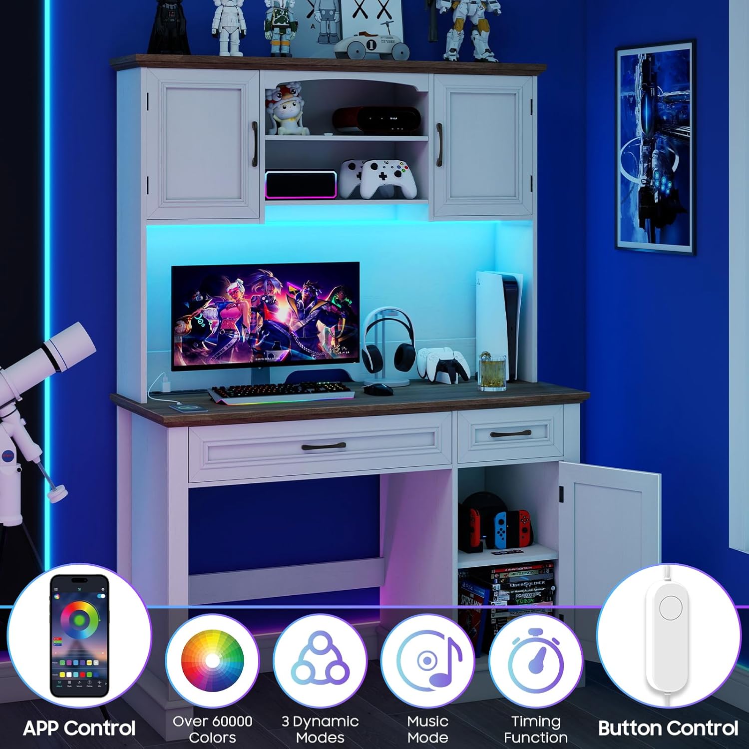 - 💻🏡【Cool Smart LED Lights】Enhance your executive desk with trendy Bluetooth LED lights. You can easily adjust colors, brightness, and modes for any occasion via a remote or an app. The lights can sync with music, adding a touch of romance and ambiance to your everyday life.