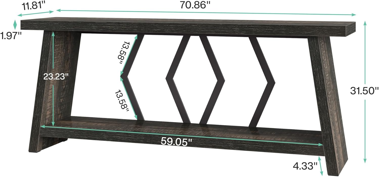 - Double-Decker Display: The 70.86-inch extra long sofa table comes with a two-tier design. This means double the display space for your cherished artifacts, books, or décor items, neatly arranged, always at arm’s length.