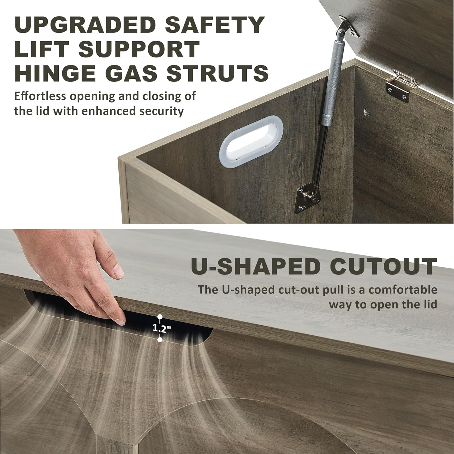 - 【 Upgraded Safety Lift Support Hinge】Stradier and safer, thanks to the upgraded support hinge, the lid of this storage chest can stay securely open at any angle—no slamming shut, it opens and closes slowly to avoid pinching fingers! U-shaped cut-out pull allow for easy opening of lockers and breathability of your stored items.