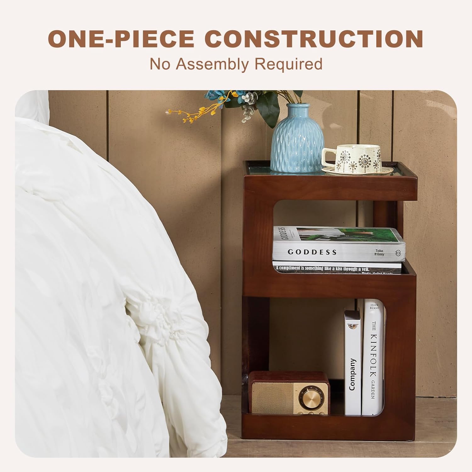 - 【One-Piece Construction】This solid wood nightstand arrives with one-piece construction. No tools, no setup - just place it and enjoy immediately, saving time and effort.