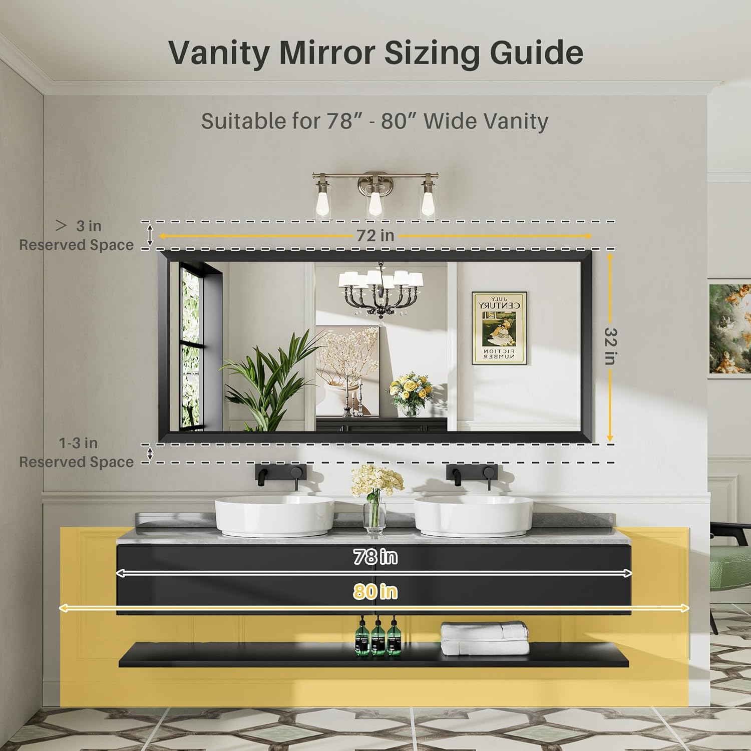 - ššÆšš«šš„š„ ššš¬šš”ššš¢šš¬ š šØš« ššØšØš¦ šĆ©ššØš«: The bathroom mirrors for over sink with its modern frame, not just for bathroom, it also can be used in a variety of scenarios, like vanity, farmhouse, bedroom, living room, dining room, entryway, fireplace, corner which is perfect to a room remodeling project and adds a stylish look to your house.