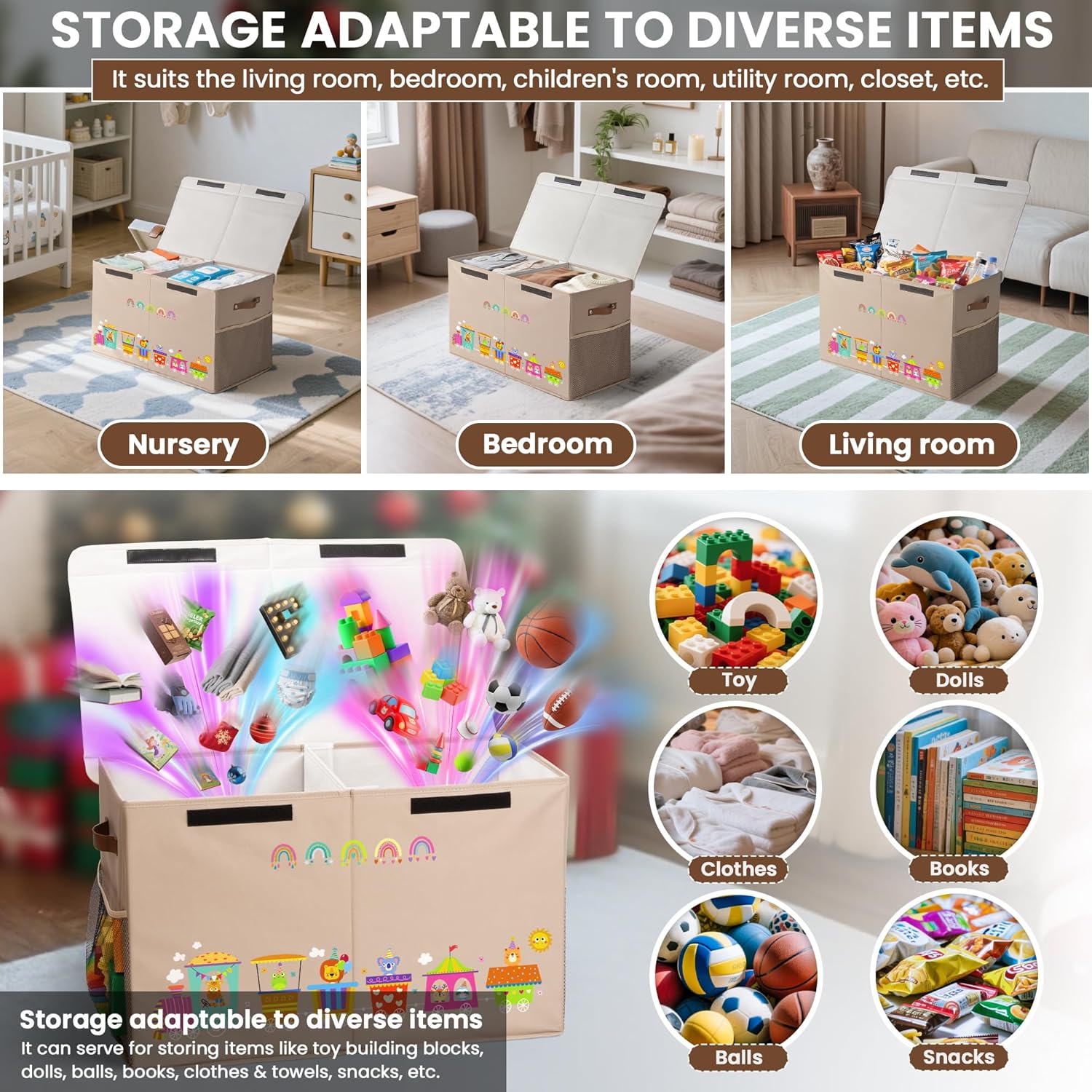 - Durable & Sturdy: This toy bin for kids is made of eco - friendly and durable thickened 600D Oxford fabric and cardboard. The structure is stable and solid, not easy to deform. The handles on both sides are upgraded and reinforced, so they won't break easily, adding safety guarantees for moving the box.