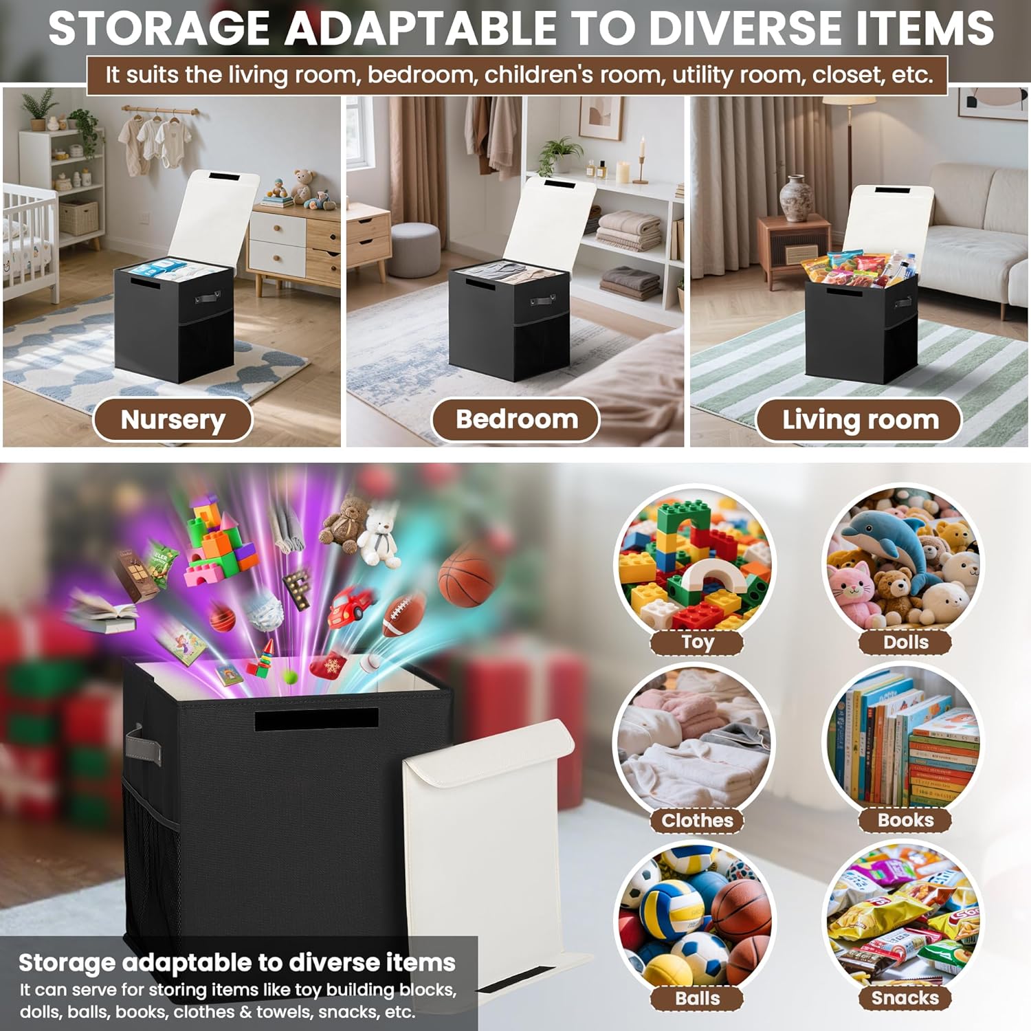 - Detachable & Foldable: The flip-top at the top of this large toy box is fixed with Velcro, which is easy to install and disassemble, and can block dust. When not in use, it can be folded and stored in a corner space without taking up extra space, meeting the storage needs of families.