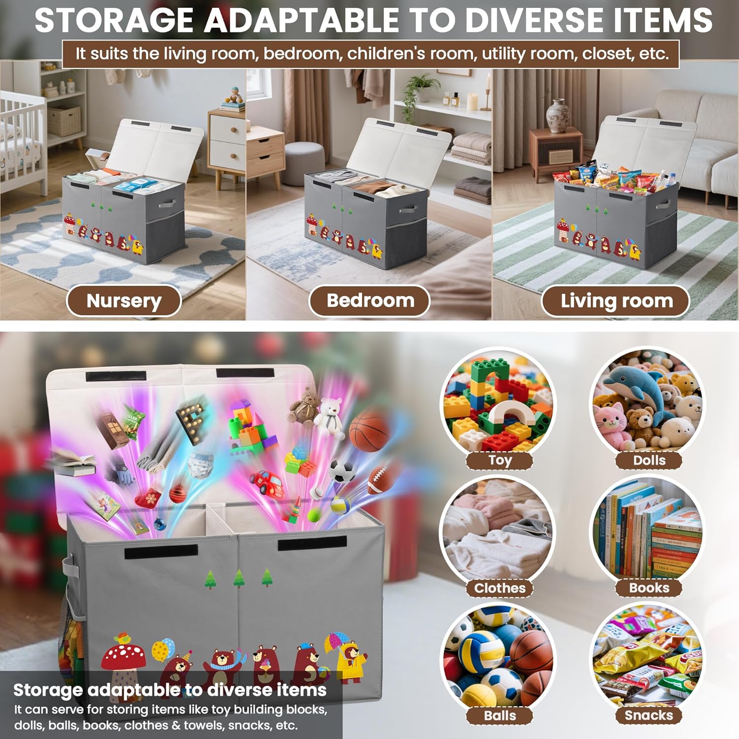 - Durable & Sturdy: This toy bin for kids is made of eco - friendly and durable thickened 600D Oxford fabric and cardboard. The structure is stable and solid, not easy to deform. The handles on both sides are upgraded and reinforced, so they won't break easily, adding safety guarantees for moving the box.