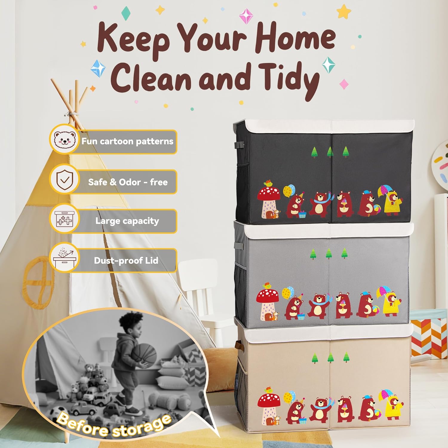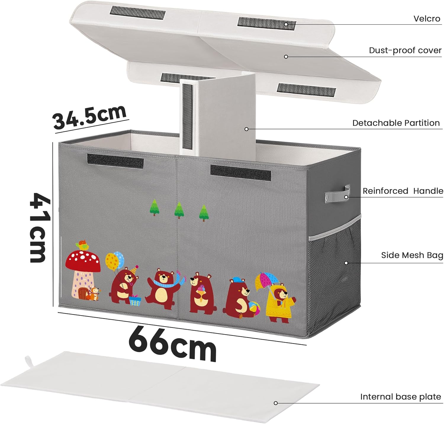 80L Large Toy Storage Box with Lid, Large Toy Box Chest for Kids, Girls and Boys, Nursery Room and Living Room, 26"x13" x16" (grey-bear)