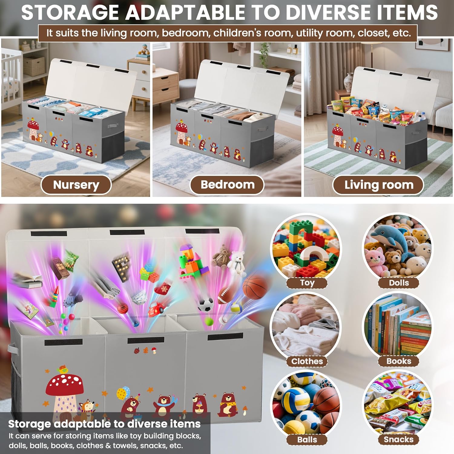 120L Large Toy Storage Box with Lid, Extra Large Toy Box Chest, Large Toy Box for Kids, Girls and Boys, Nursery Room and Living Room, 40"x13" x16" (grey-bear)