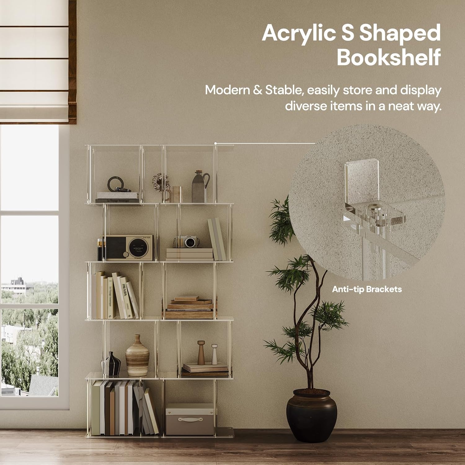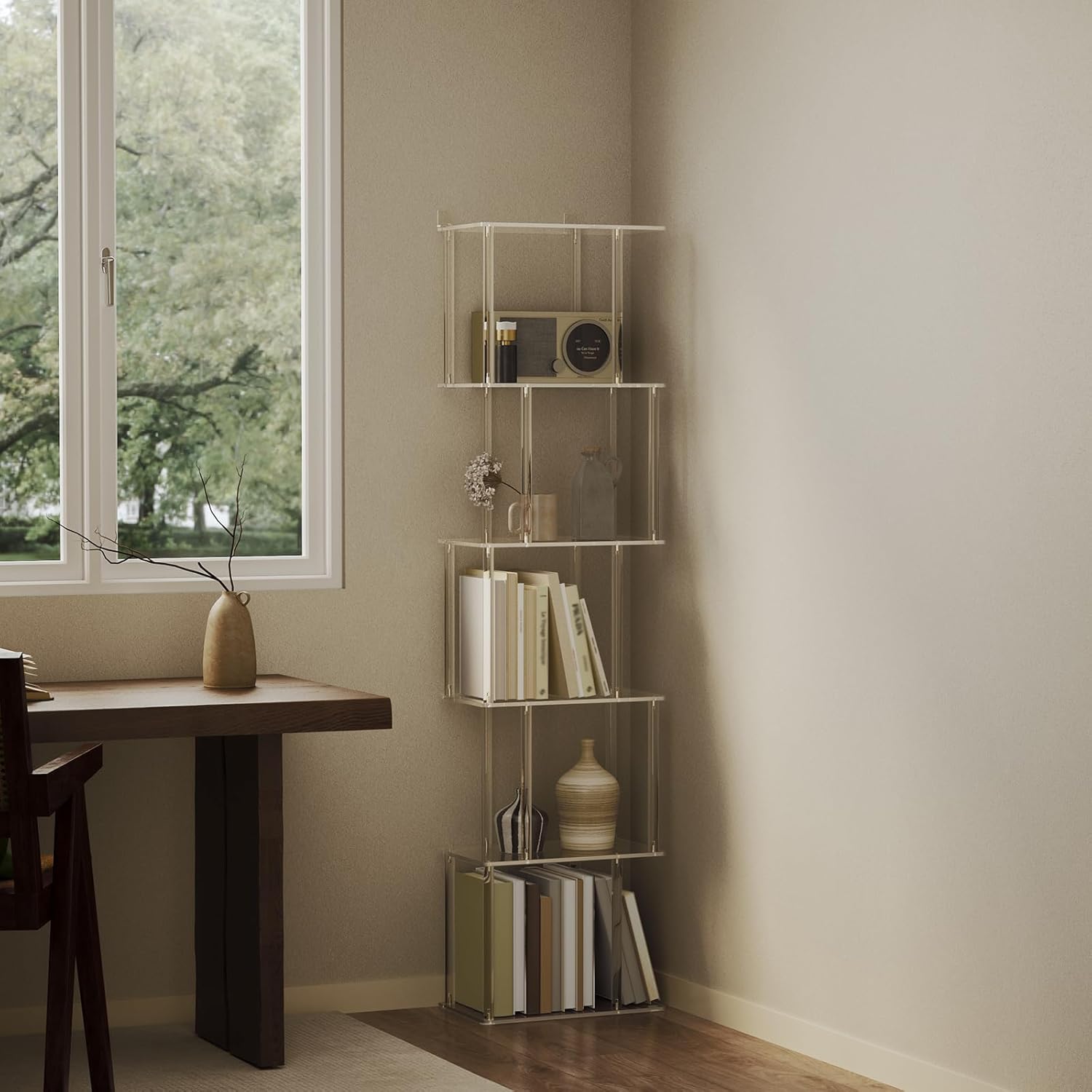 - Multi-Functional Acrylic Bookcase: Can be used as a book shelf, display shelf, storage shelf to meet your different needs. You can put it in the living room, bedroom, study, office, etc. Practical & Unique bookcase enhances the beauty of the space. Two anti-tip brackets can be used to keep it more safe and stable