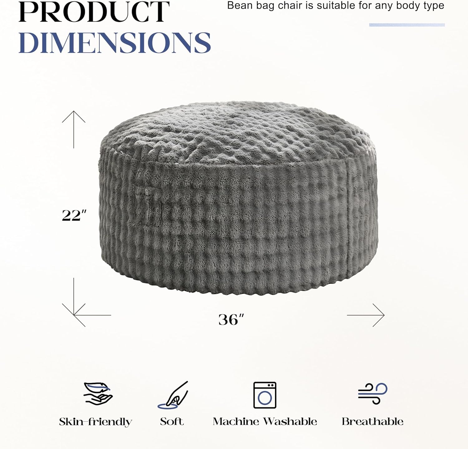 Hobestluk Bean Bag Chairs 3ft Beanbag Chair with Filler Adult Bean Bags with Fluffy & Machine Washable Cover, Giant Bean Bag Chairs for Adults (Grey, 3FT-36" x 36" x 22")