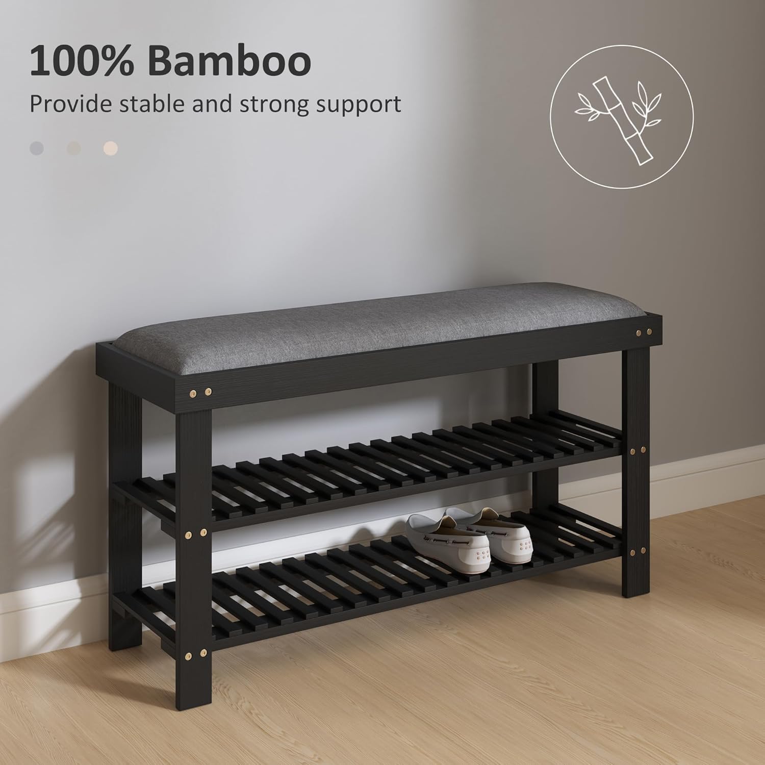 - Sleek & Stylish: With its simple and bright shape, this shoe rack bench's natural bamboo frame and gray cushion bring a welcoming and warm feeling to your entryway