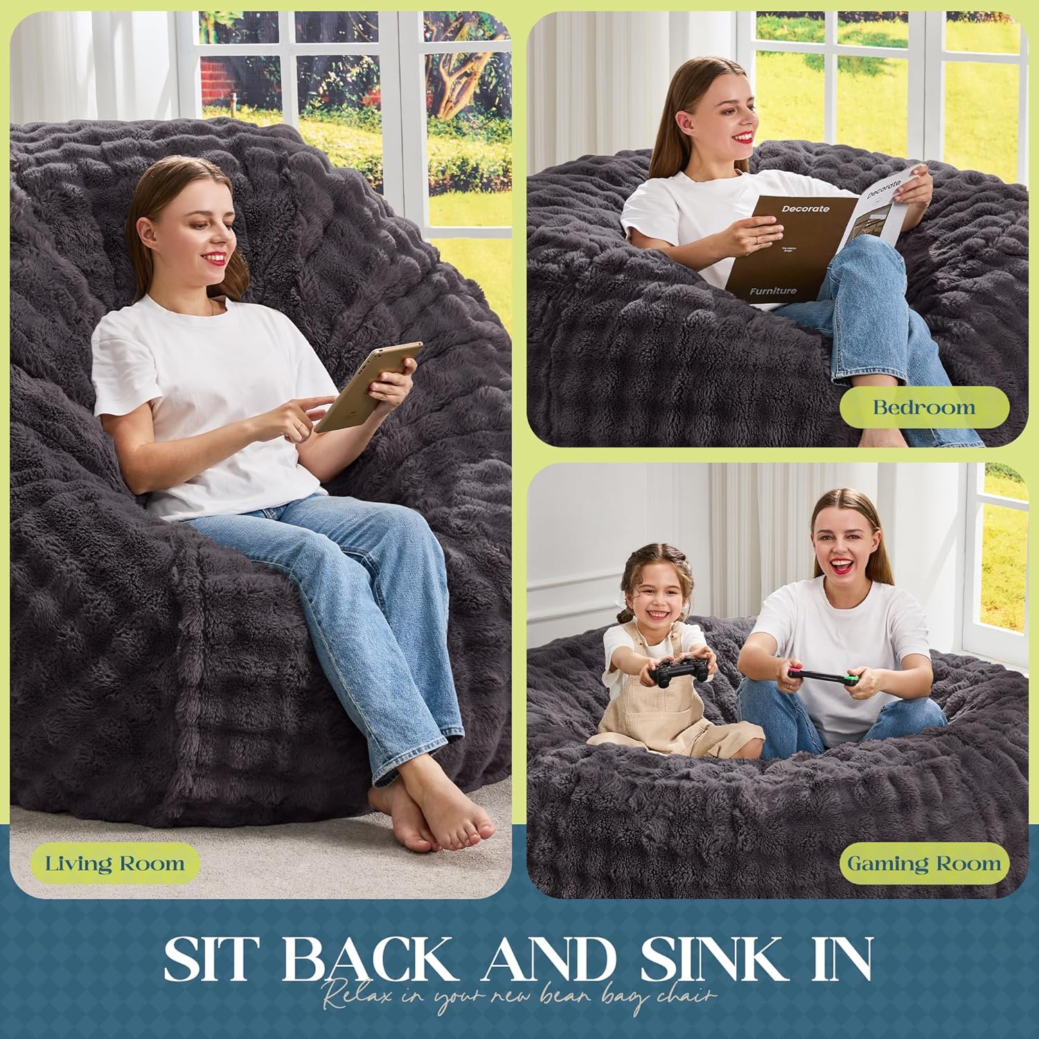 Hobestluk Bean Bag Chairs 5ft Beanbag Chair with Filler Adult Bean Bags with Fluffy & Machine Washable Cover, Giant Bean Bag Chairs for Adults (Dark Grey, 5FT-50" x 50" x 24")