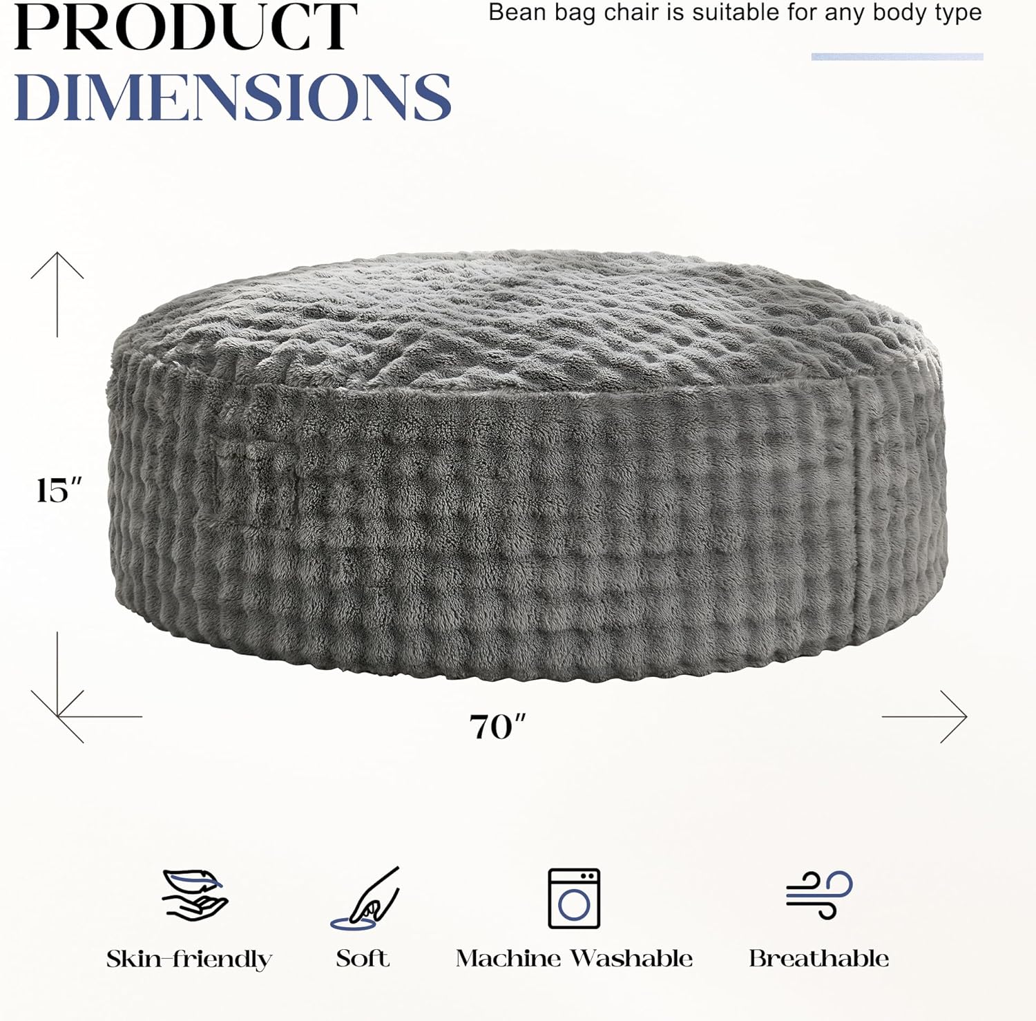 - 2-in-1 Usage: This large bean bag chairs offers two ways to use. Flip it over for added support, adapting to different scenarios for enhanced comfort and functionality.