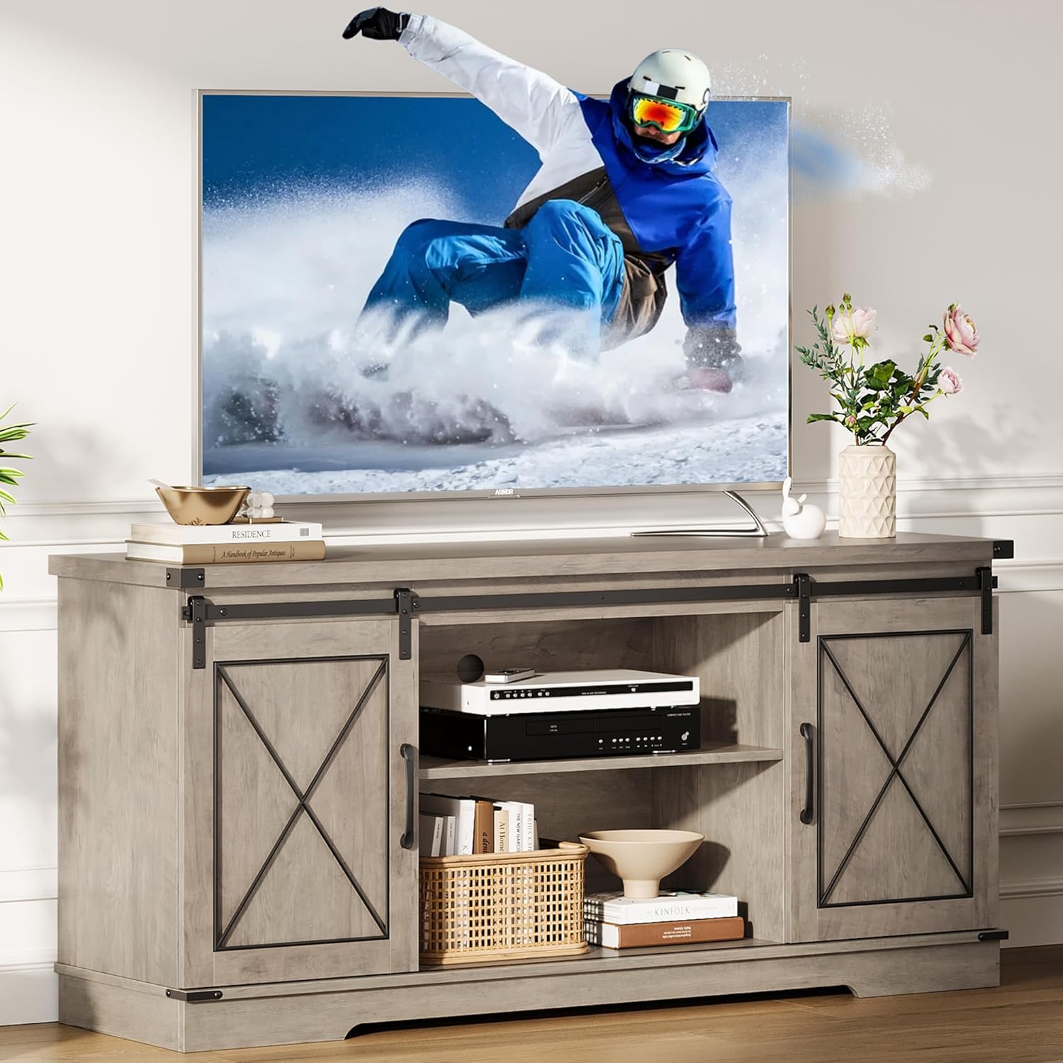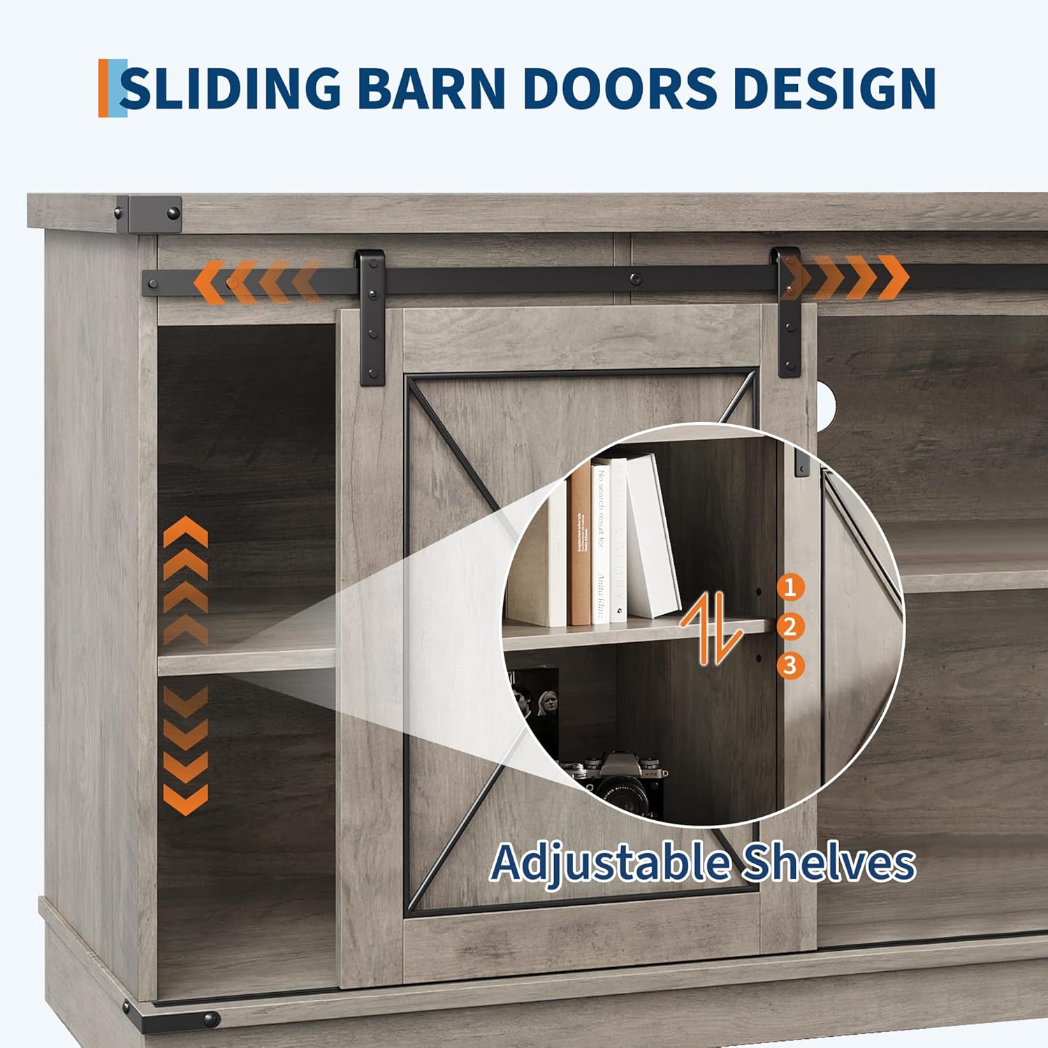 - Sliding Barn Doors: Living room tv stand features a qualified while vintage farmhouse sliding barn door, super smooth and convenient to use, meanwhile, chic and retro to serve as a tasteful addition to your living room