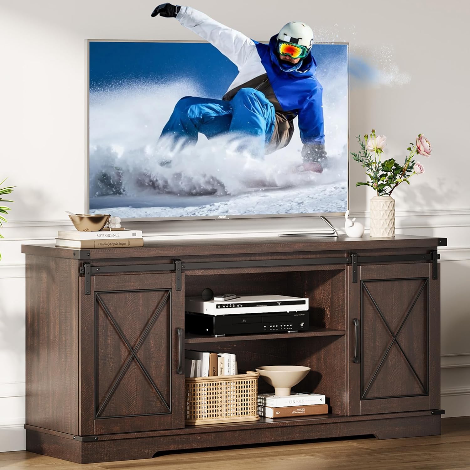- Sliding Barn Doors: Living room tv stand features a qualified while vintage farmhouse sliding barn door, super smooth and convenient to use, meanwhile, chic and retro to serve as a tasteful addition to your living room