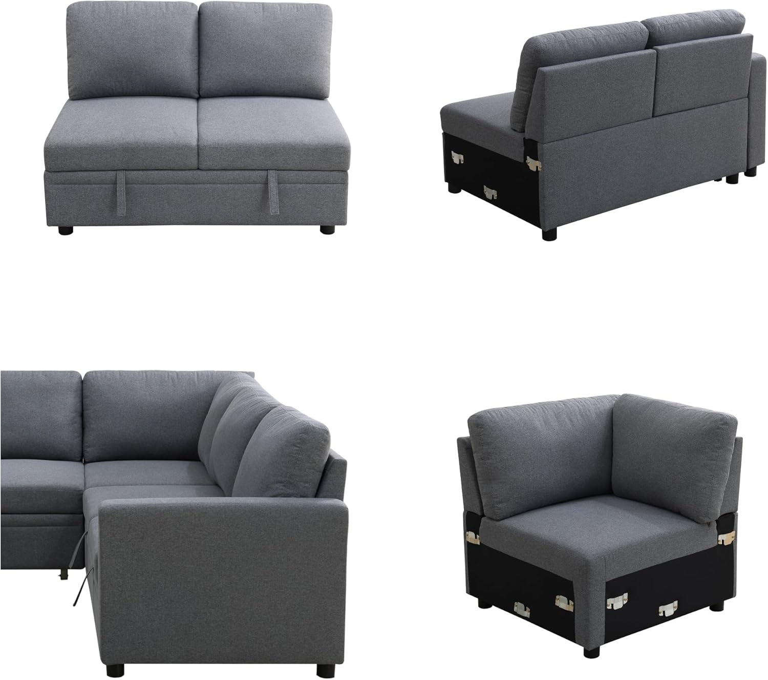4-Piece L Shaped Sofa Set with Storage Chaise, Convertible Pull Out Couch with Movable Ottoman, Modular Sectional Sofa for Living Room, Apartment, Office, Gray
