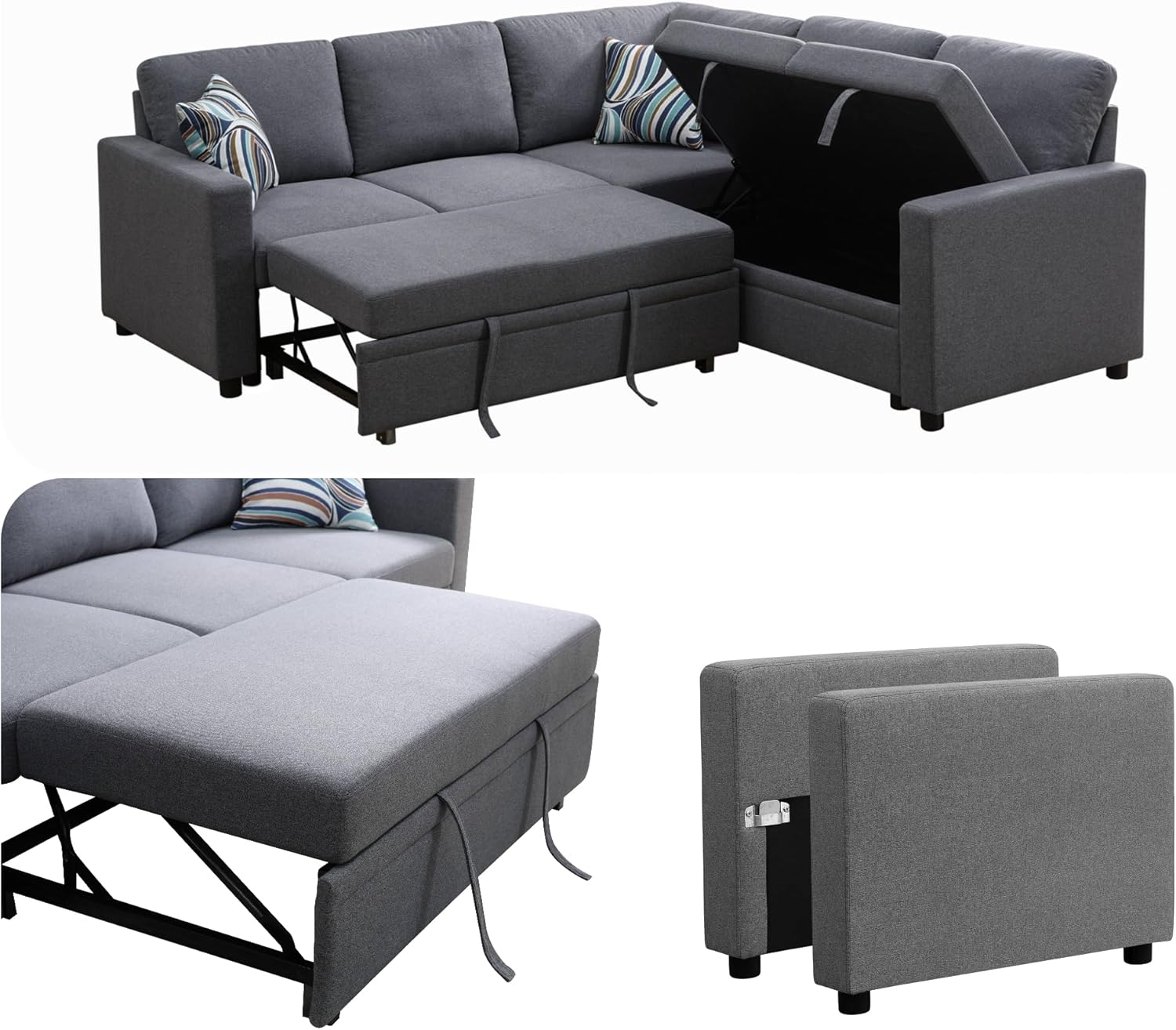 - Convertible Sofa Bed: This sectional sofa is crafted with versatility in mind, featuring built-in storage options and the capability to transform into a sofa bed, blending practicality with stylish design