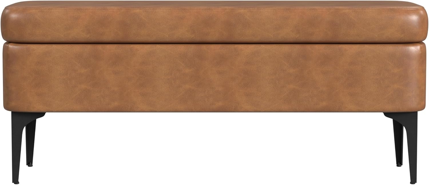HomePop Upholstered Storage Bench with Metal Leg Home Décor|Bench with Storage for Living Room & Entryway - Carmel Faux Leather