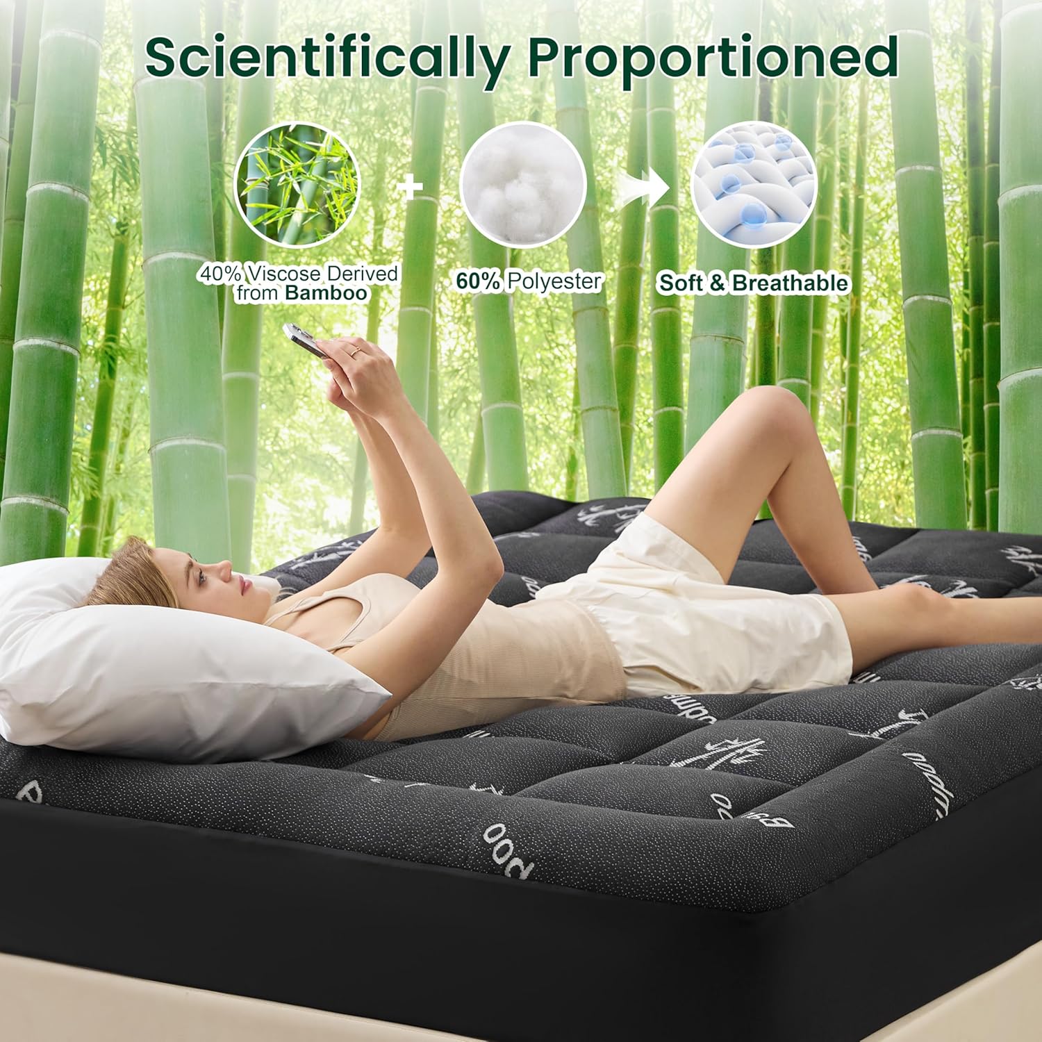 Love's cabin Queen Mattress Topper, Rayon Derived from Bamboo, 900 GSM Breathable Mattress Topper Pad, Thick Pillow Top Mattress Pad with Stretches up 8"-20" Deep Pocket(60"x80"), Black