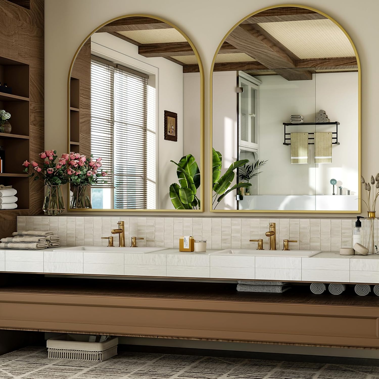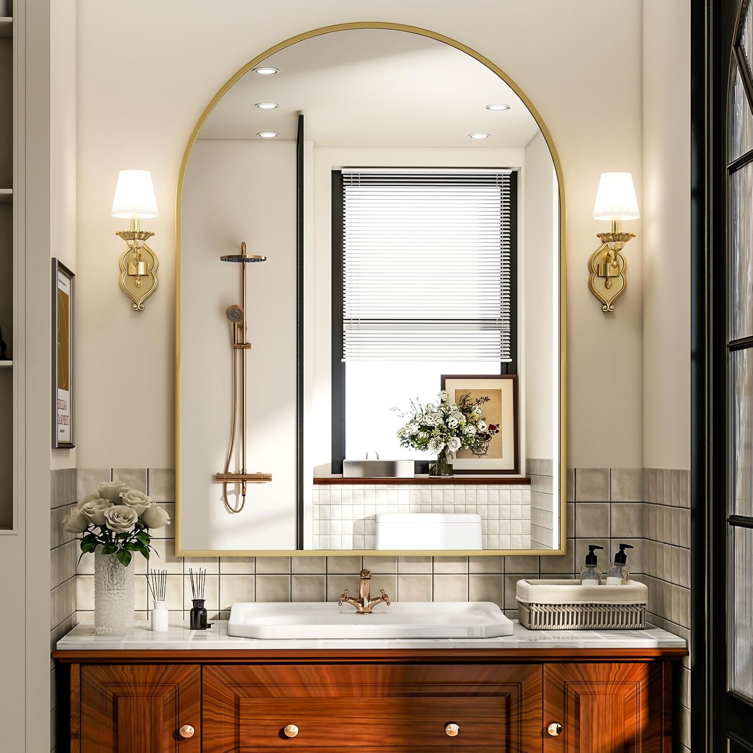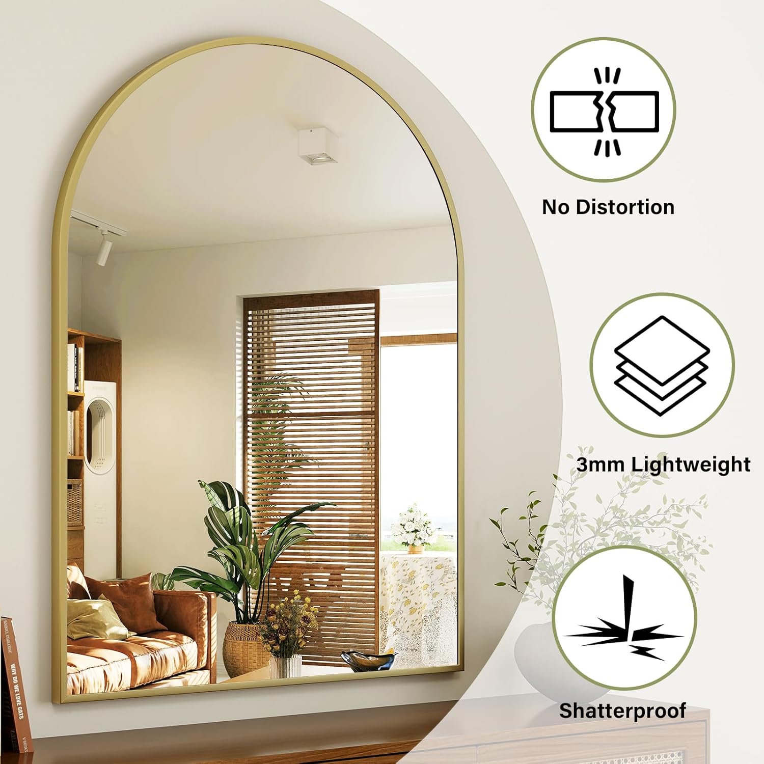 Arch Bathroom Mirror, 36x48 Inch - Wall Mounted Vanity Mirror with Aluminum Alloy Frame - Ideal for Living Room, Bedroom, Bathroom, and Entryway, Hanging or Leaning, Gold