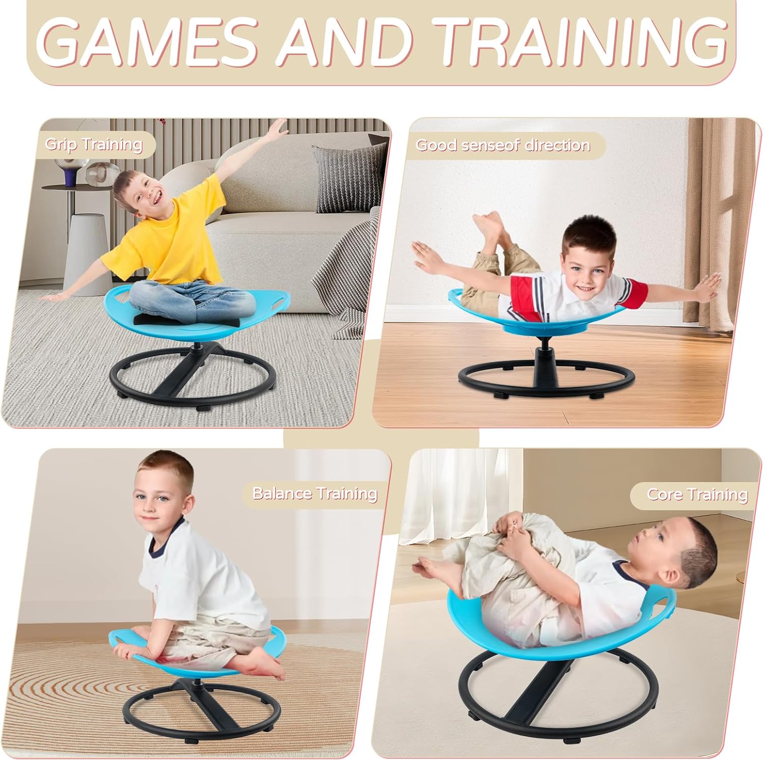 - Boost Vestibular Development: Our kids' sensory spinning chair promotes balance and spatial awareness with its 360° rotation feature. The tilt-activated design encourages natural body movements