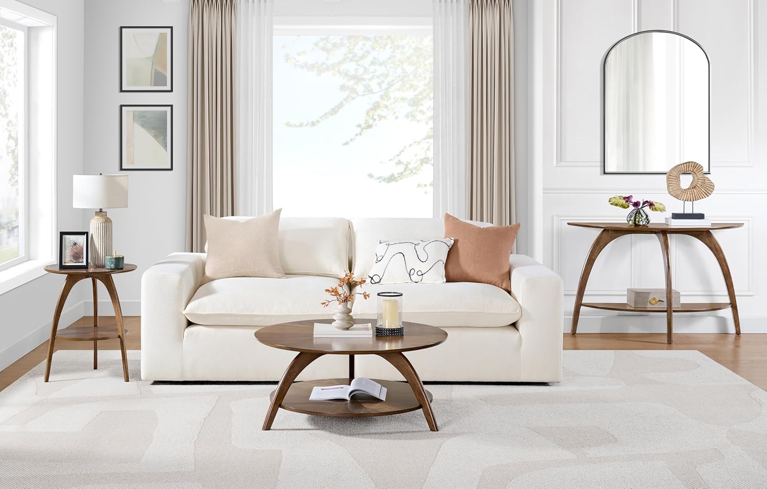 - STUNNING MID-CENTURY MODERN DESIGN – Instantly transform your living space with this sleek round end table. This stunning walnut brown wood side table effortlessly combines retro charm and modern sophistication, resulting in a striking focal point that enhances any living room or den.